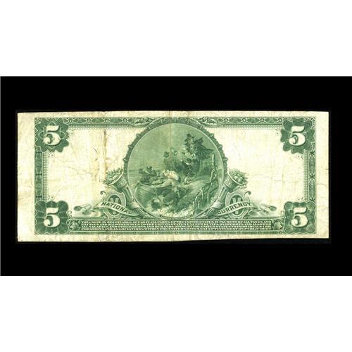 <B>Wyoming, IL</B></I> - $5 1902 Plain Back Fr. 598 <B>The NB of Wyoming</B></I> Ch. # 6629<BR>This obscure issuer failed and was liquidated in May of 1935, following into oblivion the First National Bank, which ceased operations in 1885. This addition to the census is only the sixth $5 Plain Back from here to gain the attention of the numismatic community. It is a very attractive and problem free <B>Very Fine</B></I> and needs no apologies whatsoever. The earlier banking incarnation situated here remains unreported.