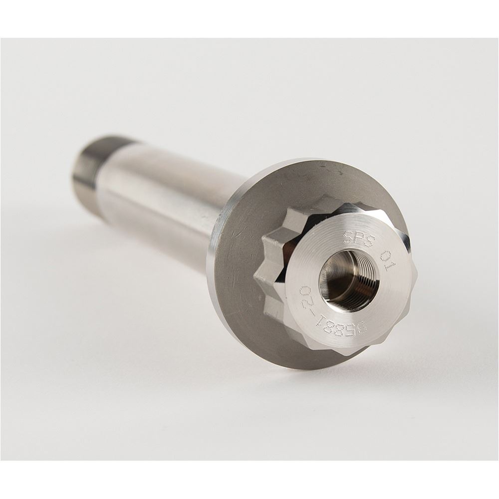 Separation nut and bolt affiliated with the X-38 Crew Return Vehicle (CRV), evidently a modified variant of the Space Shuttle Solid Rocket Booster Parachute Release Nut. The large metal nut measures approximately 4.75è long and 3.5è in diameter, and is sealed in its original cleaning bag and housed in its Hi-Shear Technology Corp. box, identifying it as "Part Number: 10309-0011-802, Item Name: Nut Release Parachute‰Û_Date of Manufacture: 07/97." The 9è bolt is etched on the head with part numbers, "SPS 01, 95881-20," and includes its SPS Technologies box. In fine condition. The X-38 was being developed by NASA to provide space station astronauts with an emergency return option, but the project never reached maturity/implementation due to budget cuts in 2002.