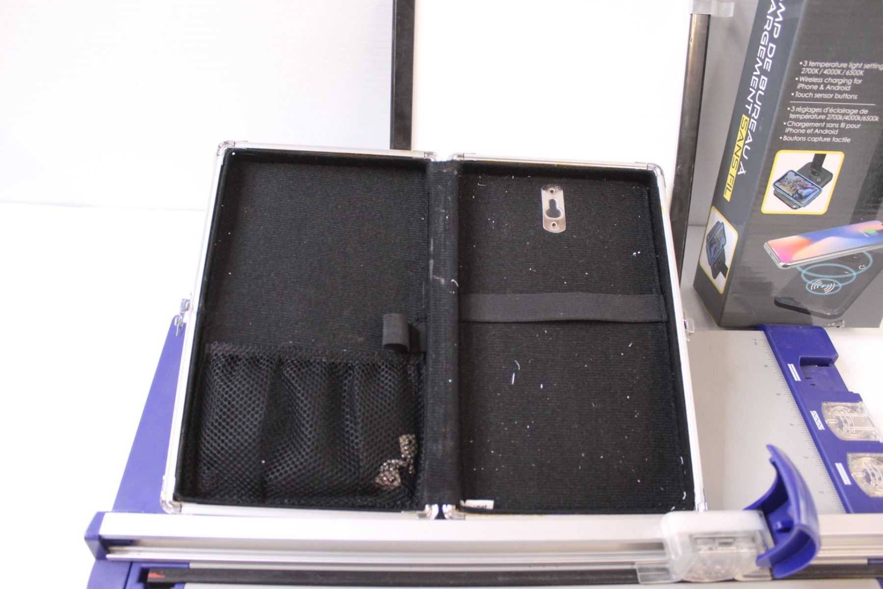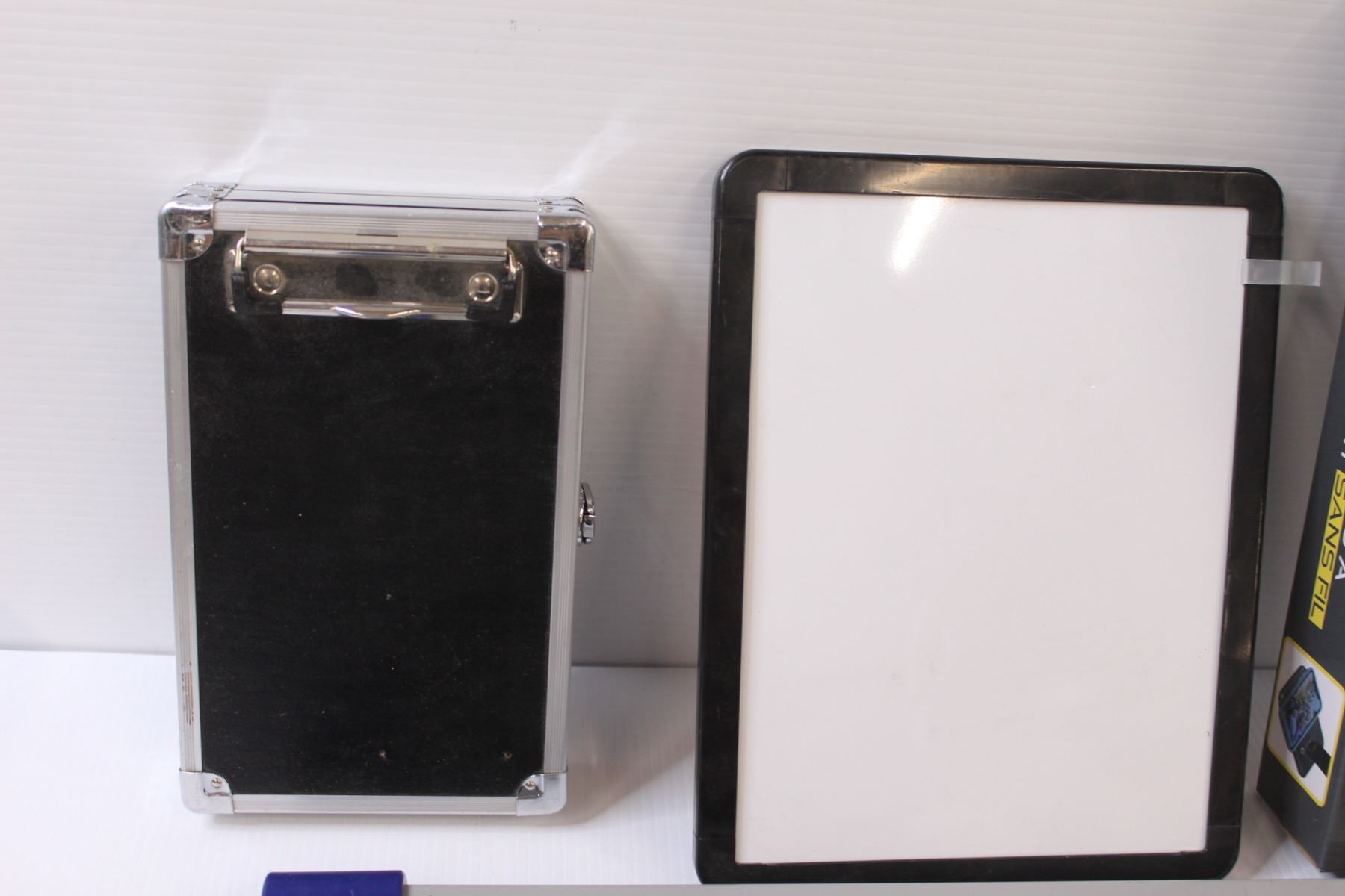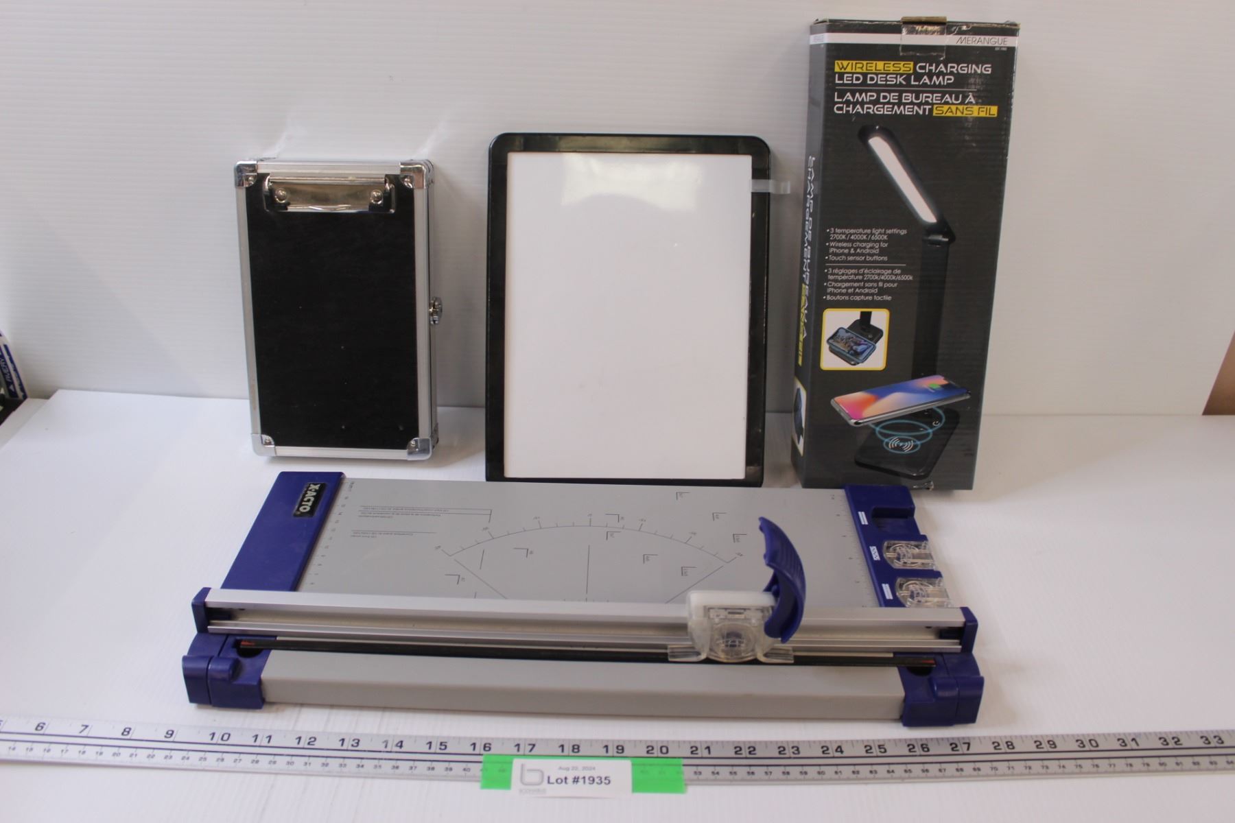 X-Acto Cutting Board w/Spare Knives, Wireless Charging Lamp (NIB), White Board, Ticket Clip-Board