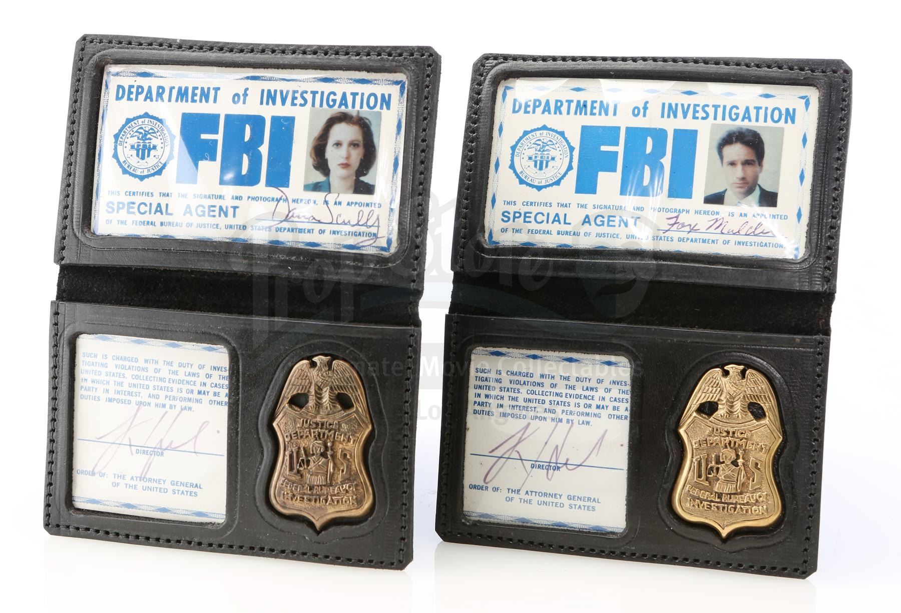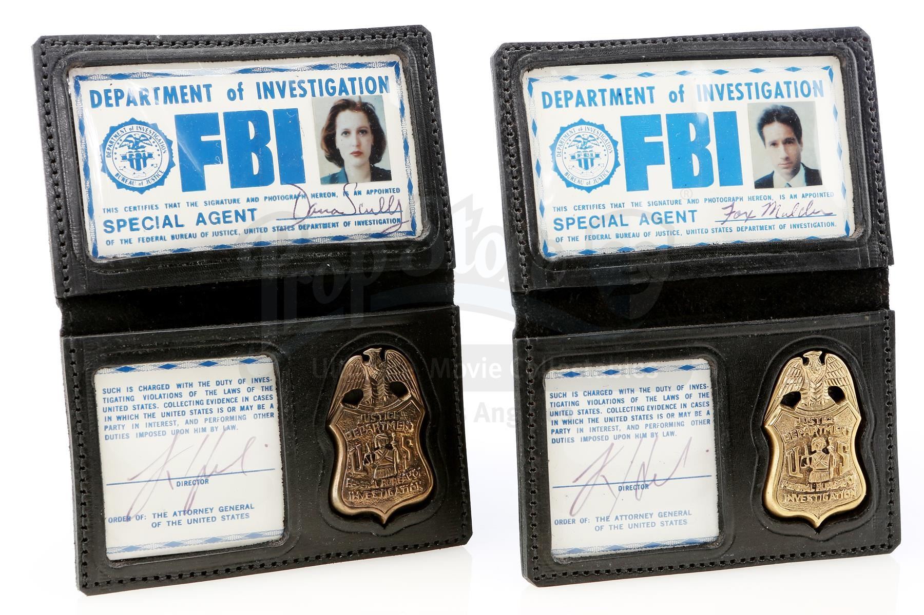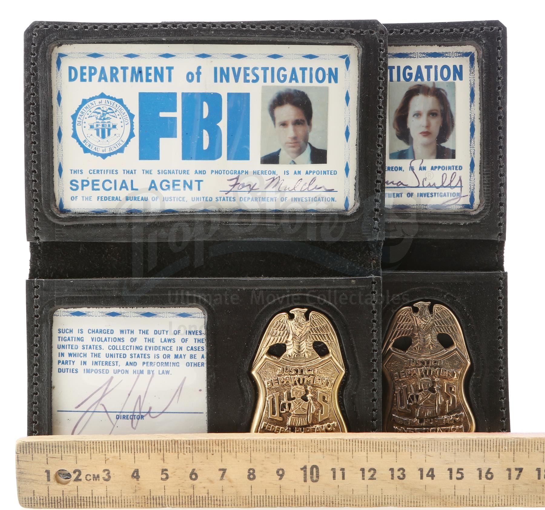 Fox Mulder's (David Duchovny) and Dana Scully's (Gillian Anderson) FBI badges from the sci-fi mystery series The X-Files.