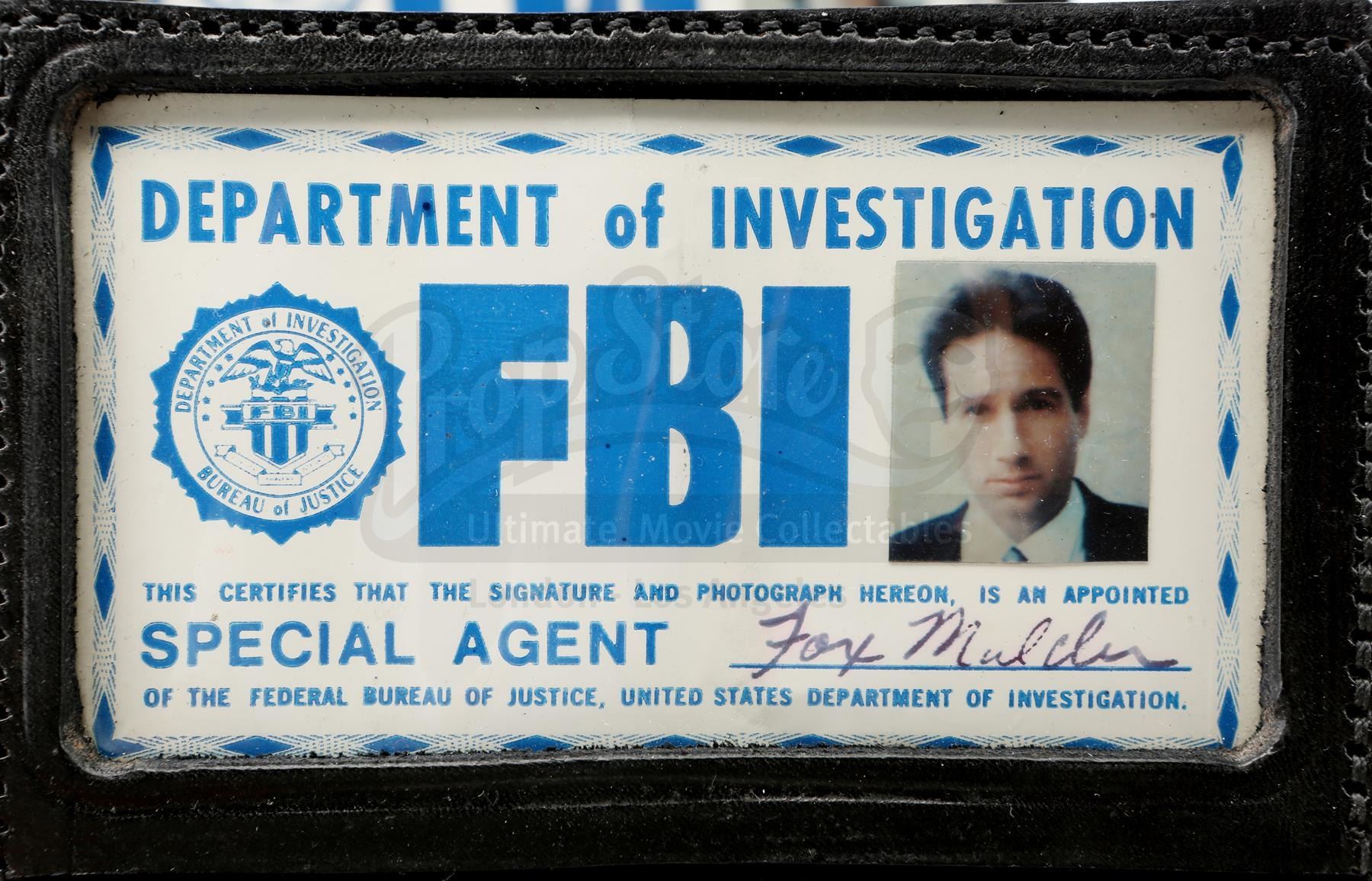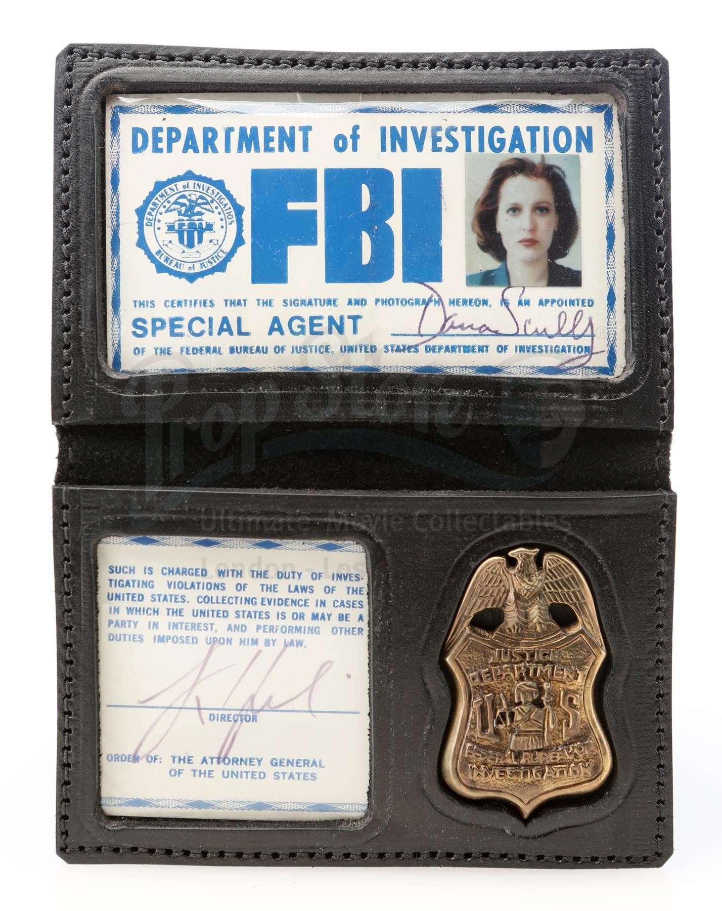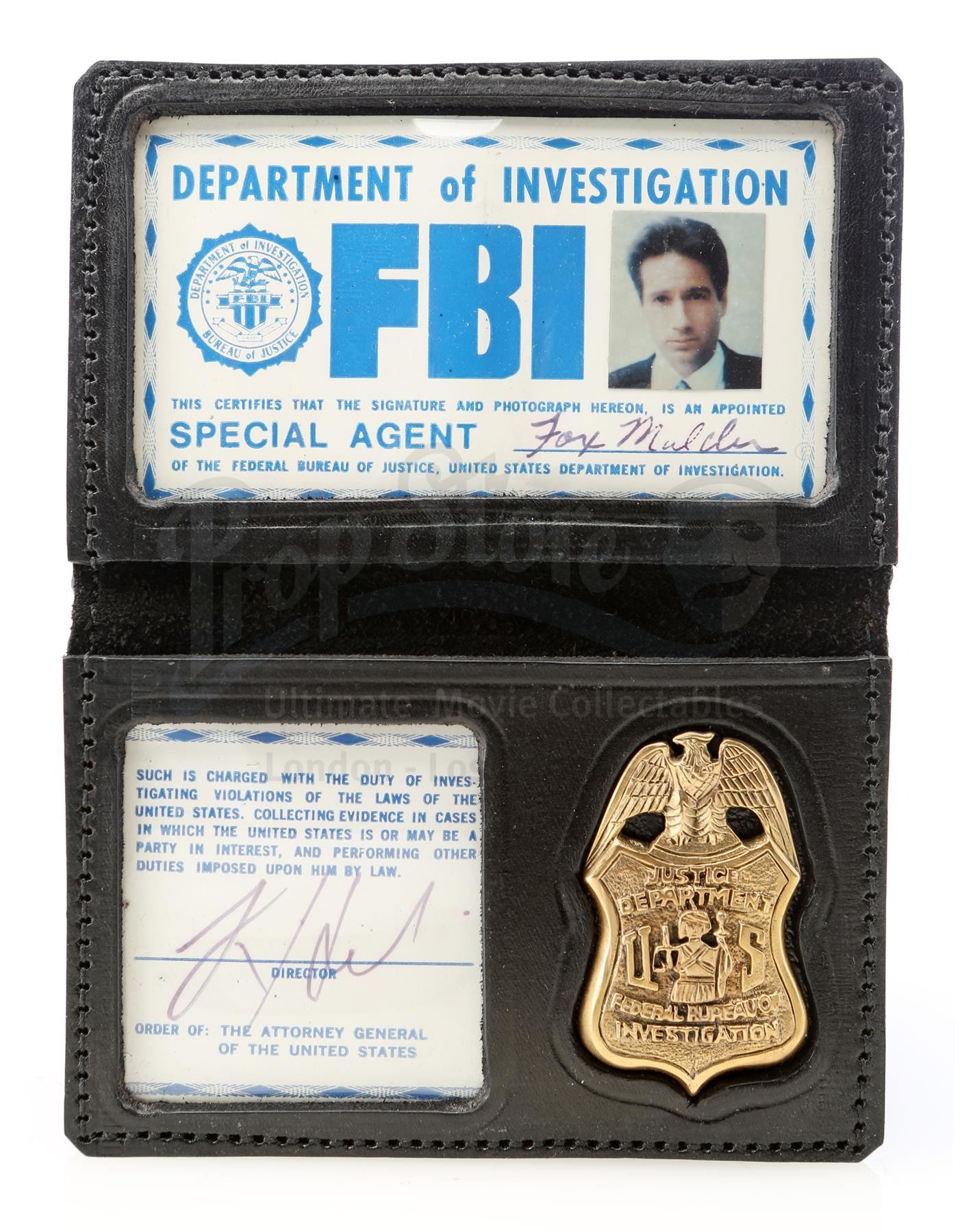 Fox Mulder's (David Duchovny) and Dana Scully's (Gillian Anderson) FBI badges from the sci-fi mystery series The X-Files.