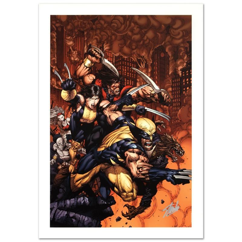 A piece of comic book history, this limited edition, from original art by David Finch, depicts an intense flurry of x-factor induced fury with Wolverine and X-23. In 2003, Finch came to Marvel Comics for a year-long arc on Ultimate X-Men, after which he began work on The Avengers and thereafter The New Avengers. He has also worked on such titles as Captain America, Spider-Man and the Hulk. "X-Factor #26" is a limited edition giclee on canvas by David Finch presented by Marvel Comics, numbered and hand signed by the great Stan Lee! Includes Certificate of Authenticity! Measure approx. 18" x 27" (image).