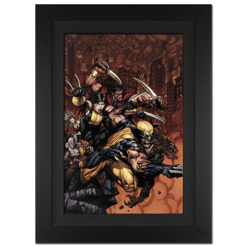A piece of comic book history, this limited edition, from original art by David Finch, depicts an intense flurry of x-factor induced fury with Wolverine and X-23. In 2003, Finch came to Marvel Comics for a year-long arc on Ultimate X-Men, after which he began work on The Avengers and thereafter The New Avengers. He has also worked on such titles as Captain America, Spider-Man and the Hulk. "X-Factor #26" is an extremely limited edition giclee on canvas by David Finch presented by Marvel Comics, hand signed by the great Stan Lee and numbered out of only 10! This piece comes custom framed and ready to hang. Includes Certificate of Authenticity! Measure approx. 25" x 34" (with frame), 18" x 27" (image).