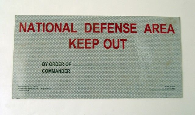 Paranoid ran deep in the classic early 1990's TV series "The X-Files". This is a "National Defense" metal sign used in the series. (Approx. 17 1/2" x 8 1/2").