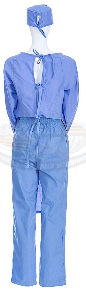 (20th Century Fox Television, 2016) This gown, cap and pants were acquired by the production for use by Gillian Anderson as "Dana Scully". The surgical outfit has no size tags and shows signs of minor wear and use, but is in good condition. In addition to our ScreenUsed COA, the surgical outfit comes with a 20th Century Fox COA confirming its use during filming.