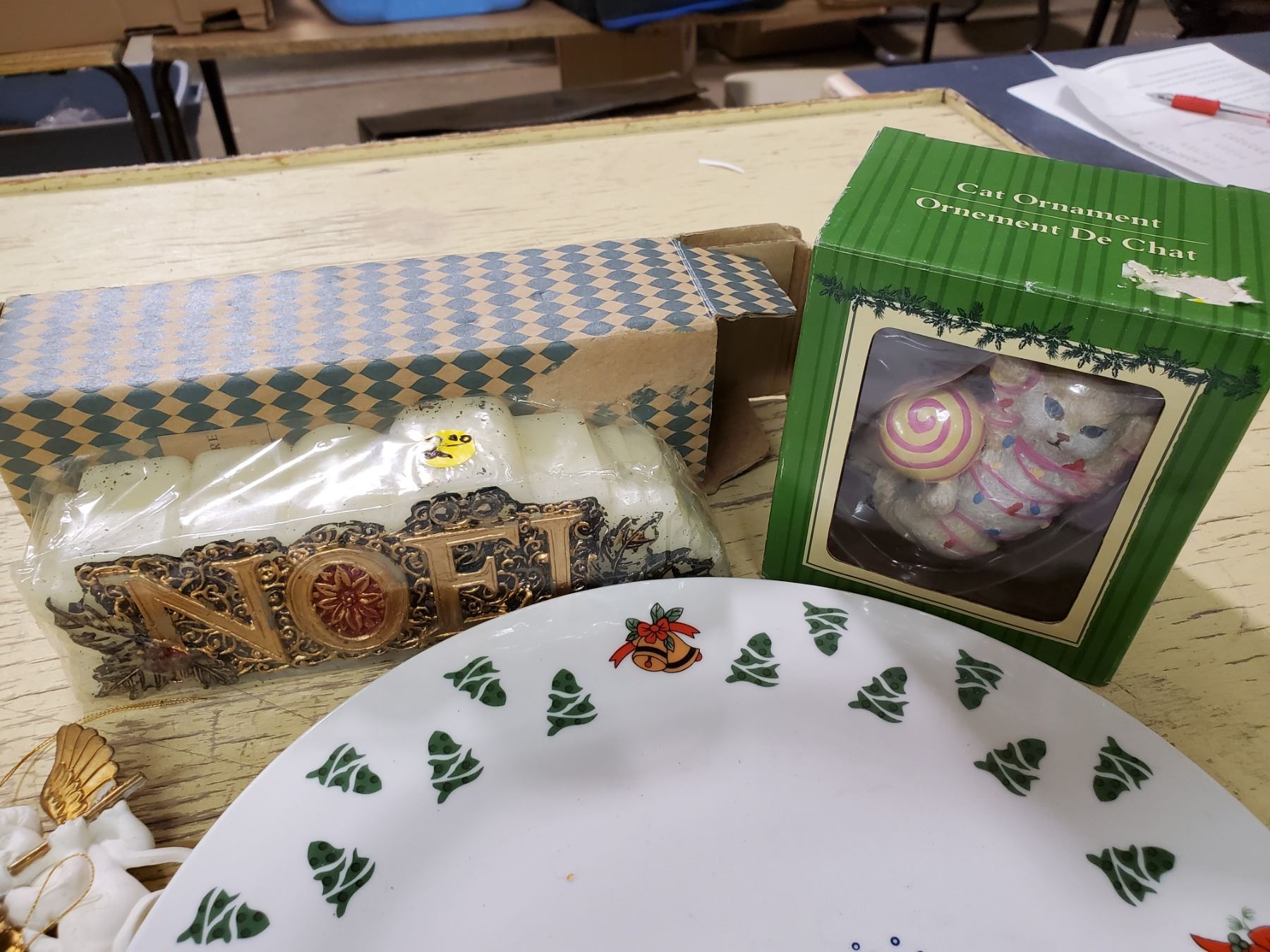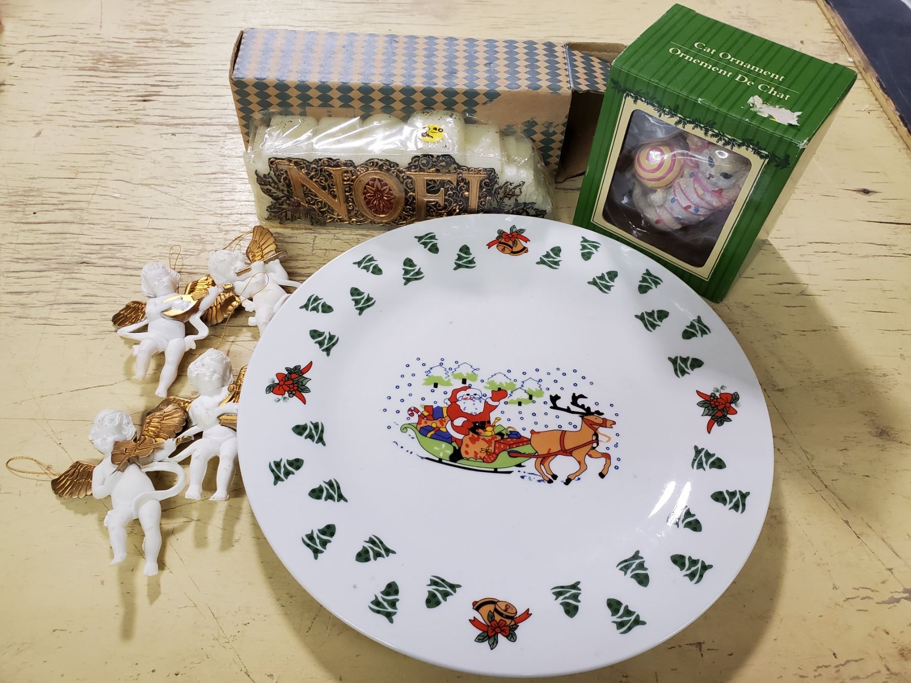 X-MAS PLATE, CHERUB ORNAMENTS, CANDLE, ORNAMAENT