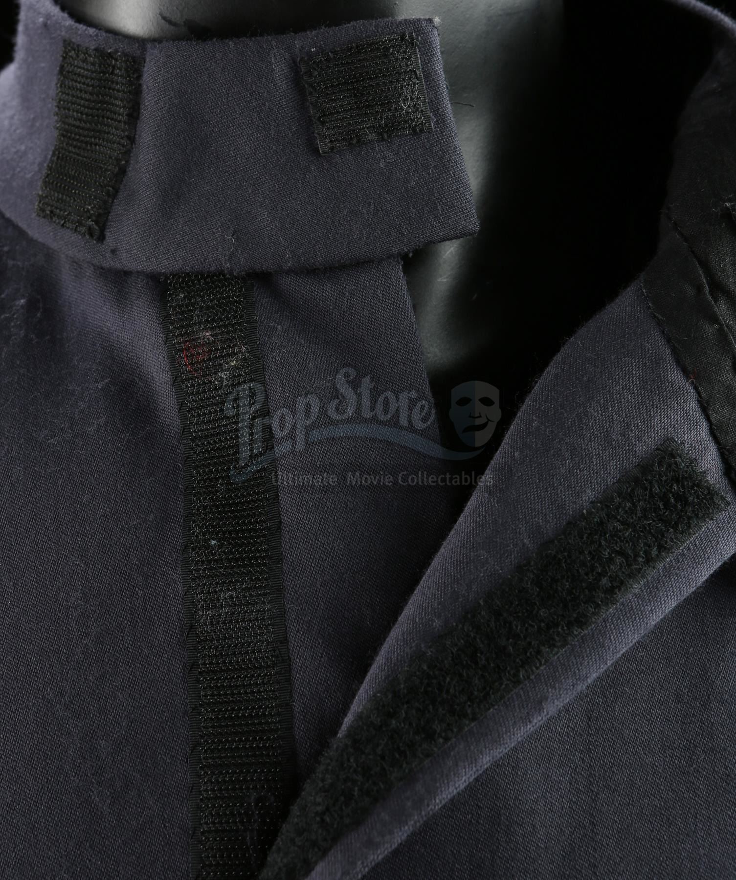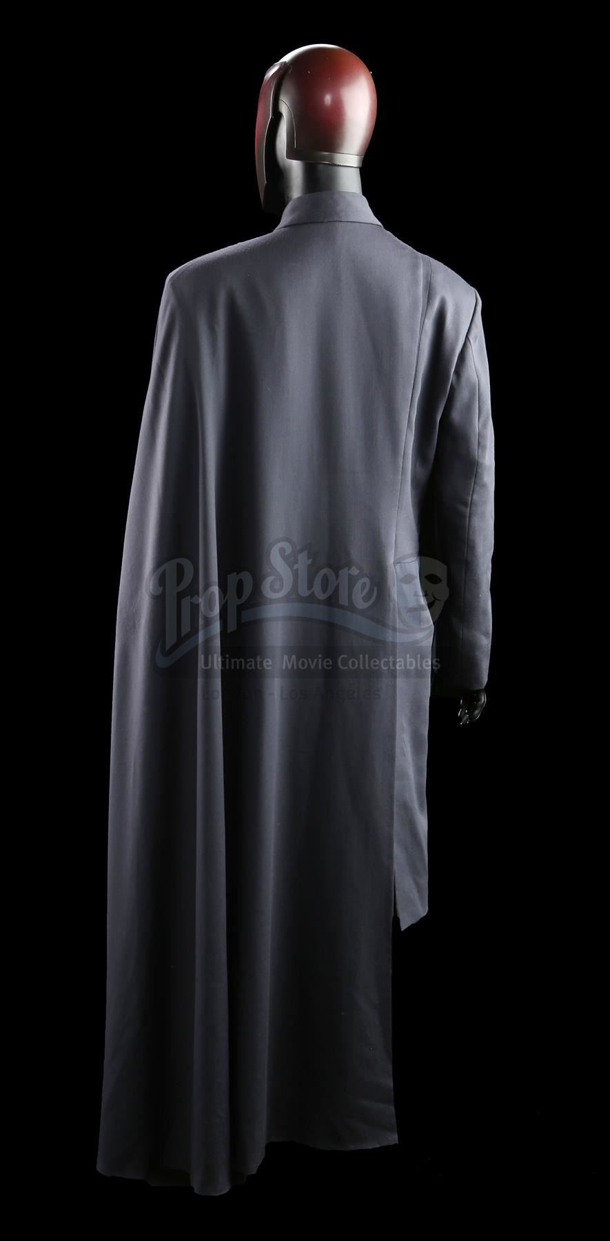 Magneto's tunic is a one-piece garment made of grey material with a red lining. Velcro segments close the front opening and Nehru collar. Three hidden straps inside the tunic were used to properly secure the garment to the actor. The lot shows light wear, with scratches and smudges to the helmet's finish, but remains in good condition. Helmet dimensions: 20 cm x 18 cm x 25.5 cm (8'' x 7'' x 10'')