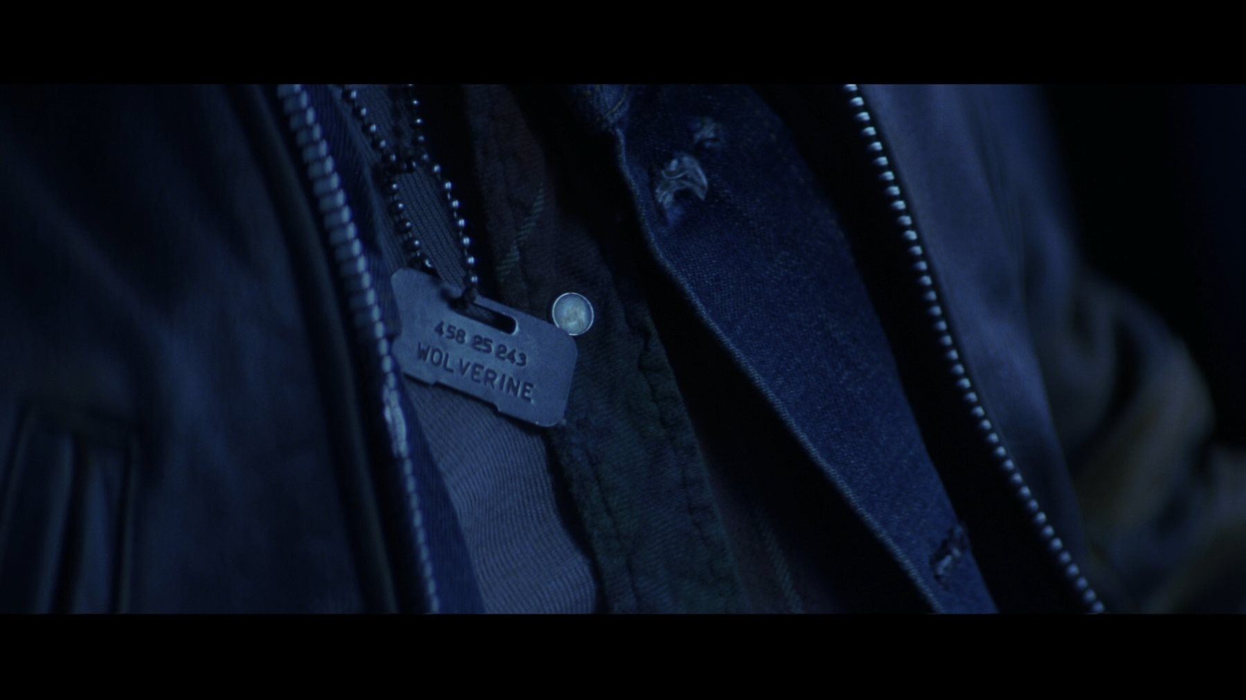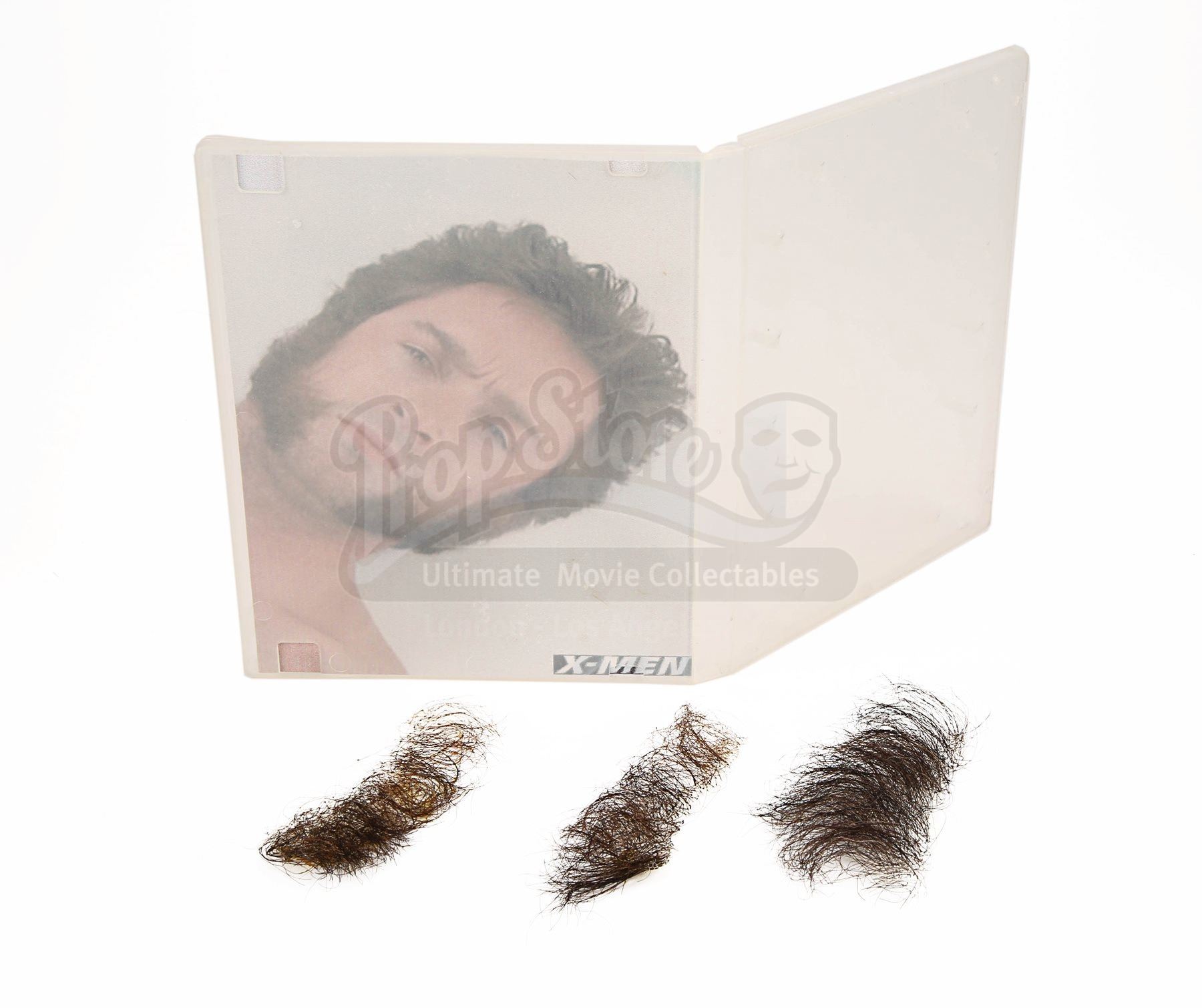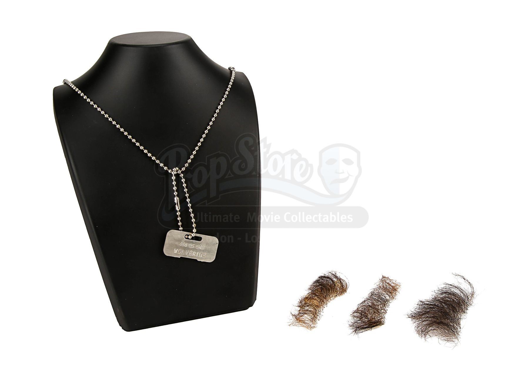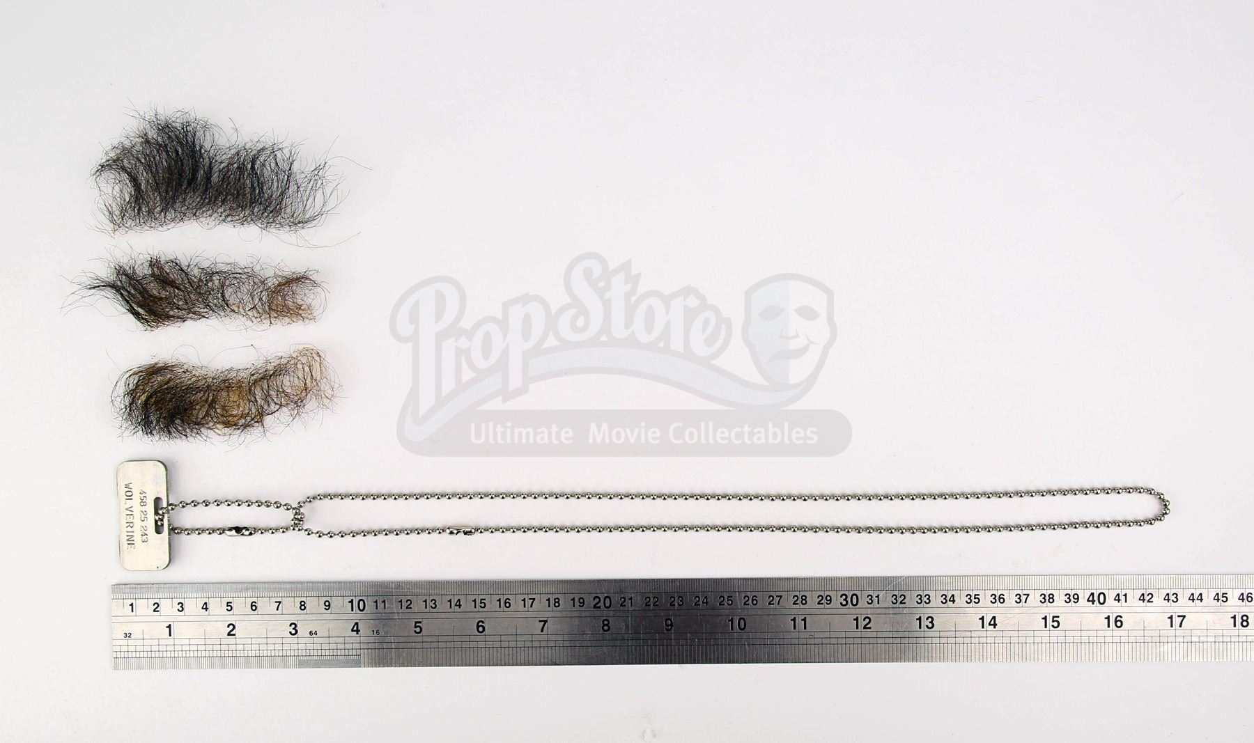 Wolverine’s (Hugh Jackman) sideburns and dog tag from Bryan Singer’s comic-book adaptation X-Men (2000). Key to his back story, Wolverine’s dog tag appeared in close-up during the cage-fight and motorhome scenes with Rogue (Anna Paquin). The character sported distinctive sideburns throughout the film, created using hairpieces over Hugh Jackman’s facial hair to form a feral beard that matched his wolf-like hairstyle.