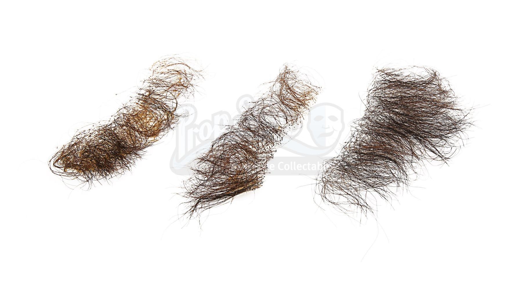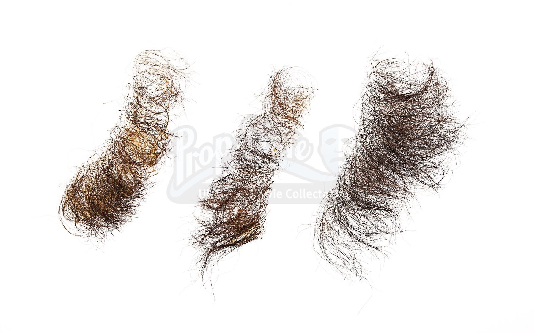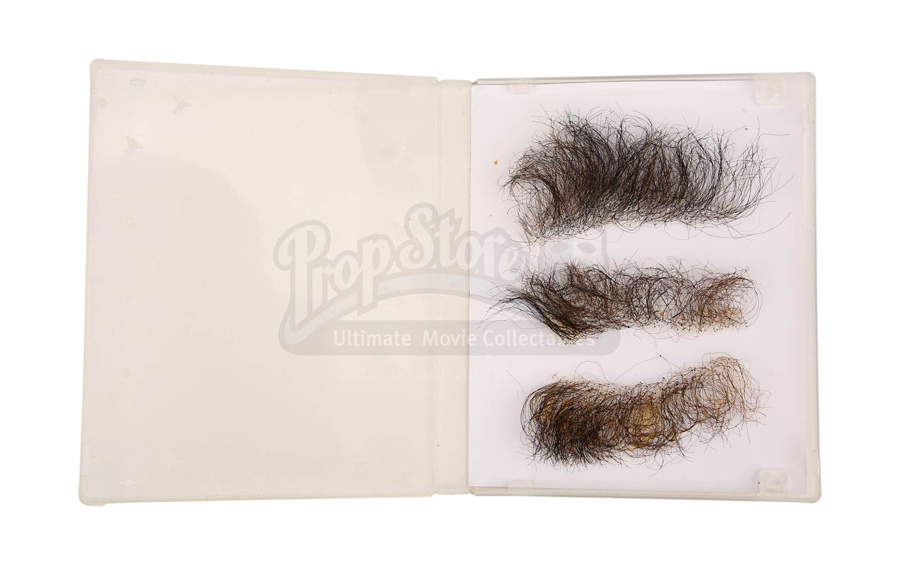The rectangular metal dog tag hangs from slender, interlinked metal chains and has “Wolverine” and the digits “458 25 243” stamped on it. The sideburns are made from real hair and feature application glue residue. The dog tag exhibits production wear and scratches from use, while the sideburns show minor wear from use. The sideburns are accompanied by a 20th Century Fox certificate of authenticity. Dimensions (dog tag on chain): 41.5 cm x 4.5 cm x 0.2 cm (16 ½” x 1 ¾” x ¼”); (sideburns in case): 16 cm x 13.3 cm x 1.8 cm (6” x 5 ¼” x ¾”)