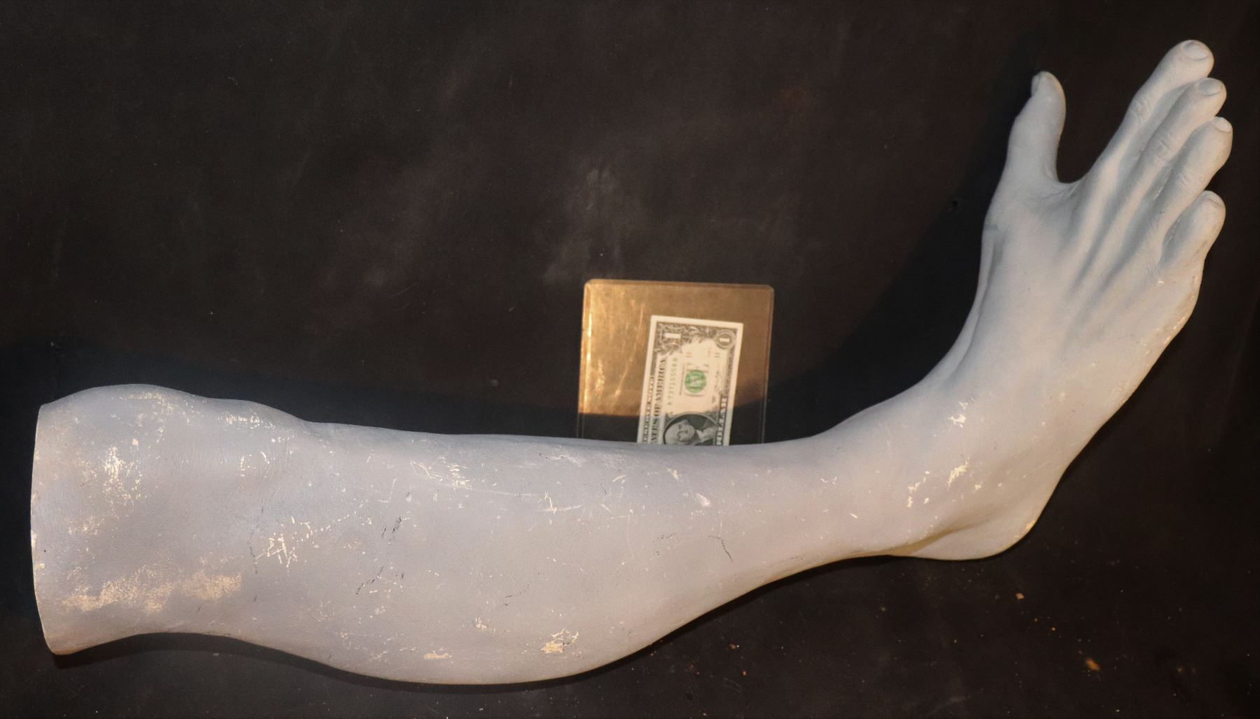 All descriptions, photographs, illustrations, and terminology including but not limited to words describing condition, authorship, period, culture, source, origin, measurement, quality, rarity, provenance, importance, exhibition, and relevance, used in the catalog, bill of sale, invoice, or anywhere else, represent a good faith effort made by HORRORDOMAIN.COM to fairly represent the lots and property offered for sale as to origin, date, condition, and other information contained therein; they are statements of opinion only. HORRORDOMAIN.COM and the Consigner are not responsible for any errors or omissions in the printed or online catalogues, online listings or any other material. It is the Bidder’s responsibility to view the images or fully inspect the property before bidding to determine the condition and size and also to determine if has been repaired or restored. They are not representations or warranties and Bidder agrees and acknowledges that he or she shall not rely on them in determining whether or not to bid or for what price. Price estimates (which are determined well in advance of the auction and are therefore subject to revision) and condition reports are provided solely as a convenience to Bidders and are not intended nor shall they be relied on by Bidders as statements, representations or warranties of actual value or predictions of final bid prices.