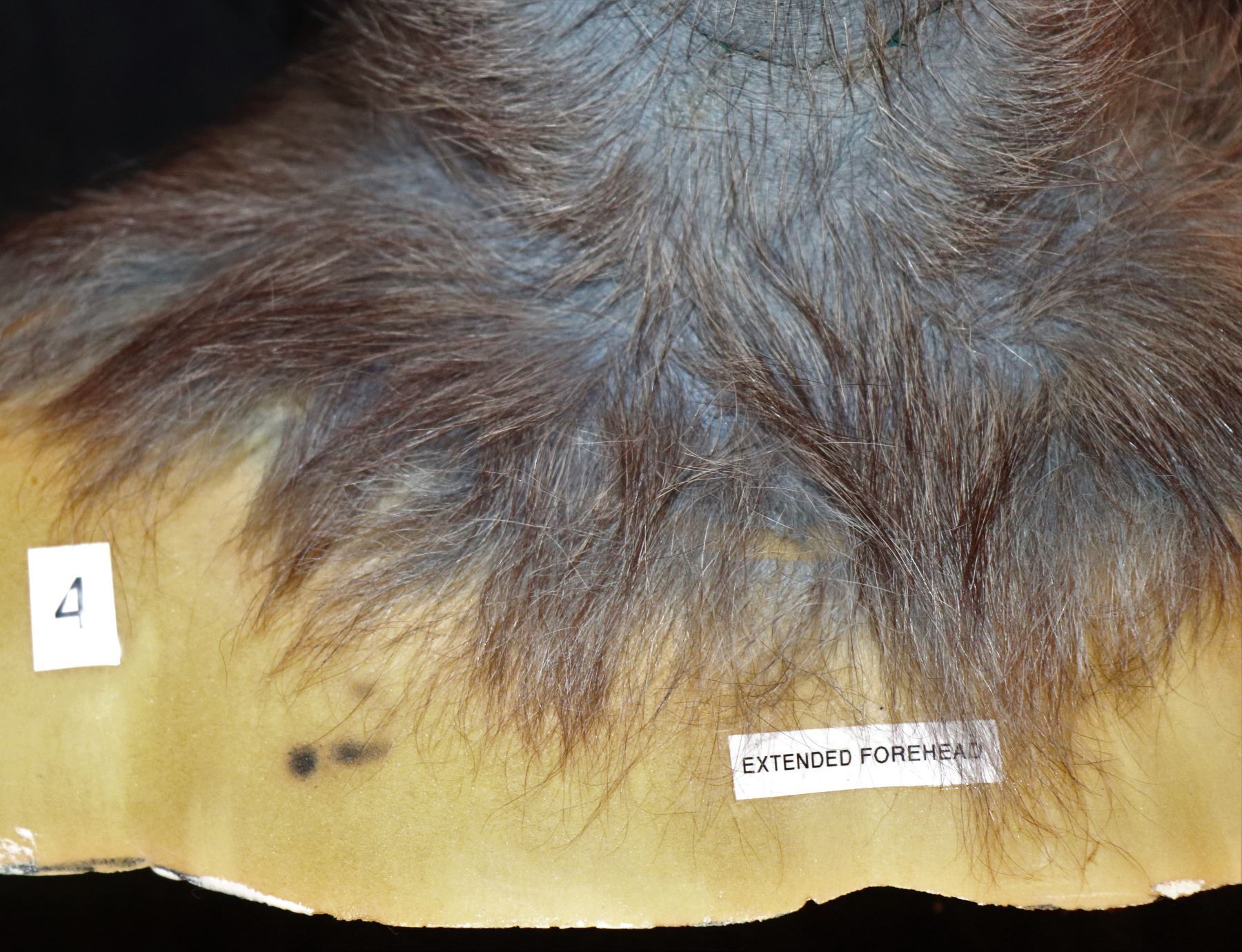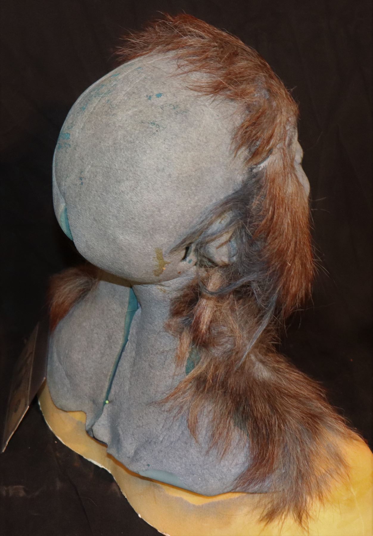 This was glued on the actor, then peeled off and put on the bust after filming. I assume there was a rear hair piece that went over this.