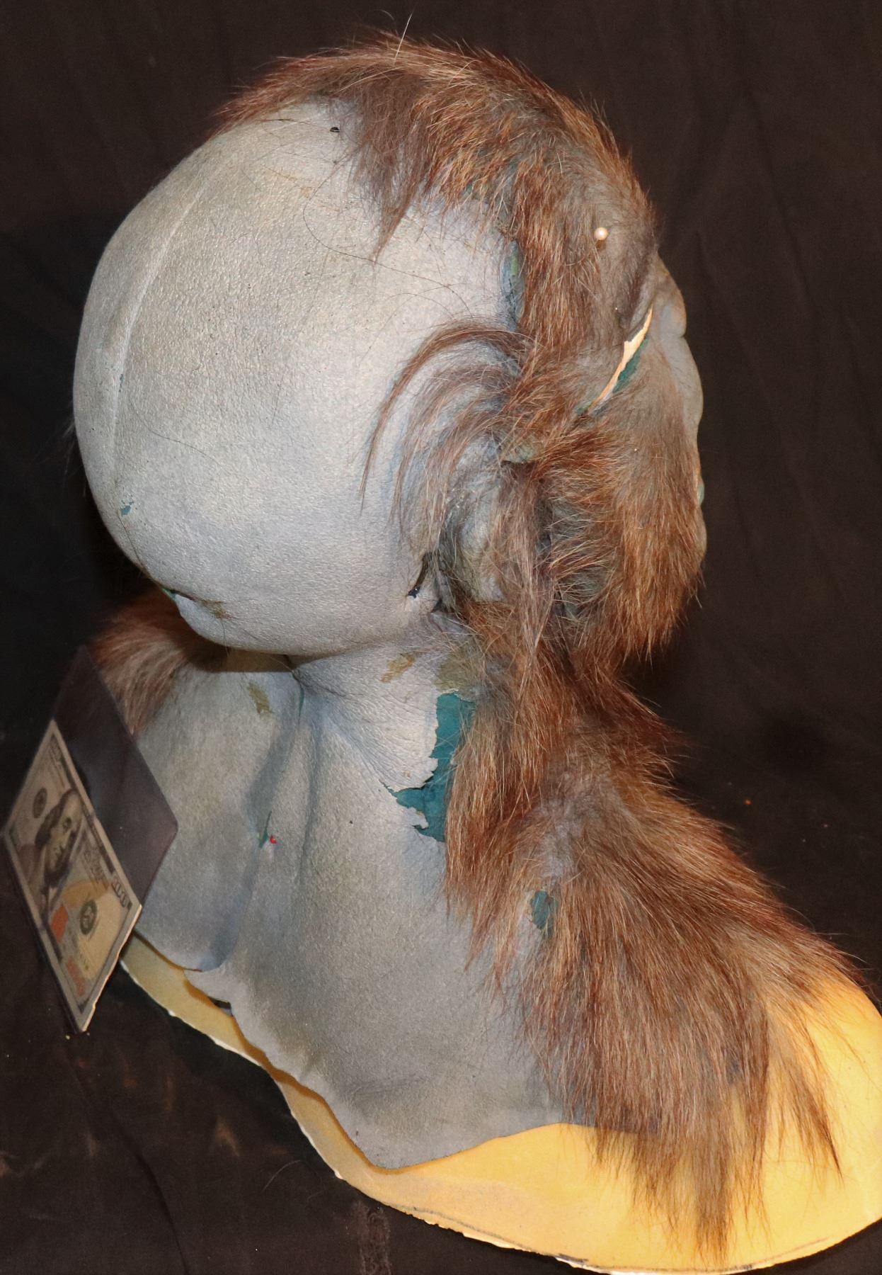This was glued on the actor, then peeled off and put on the bust after filming. I assume there was a rear hair piece that went over this.