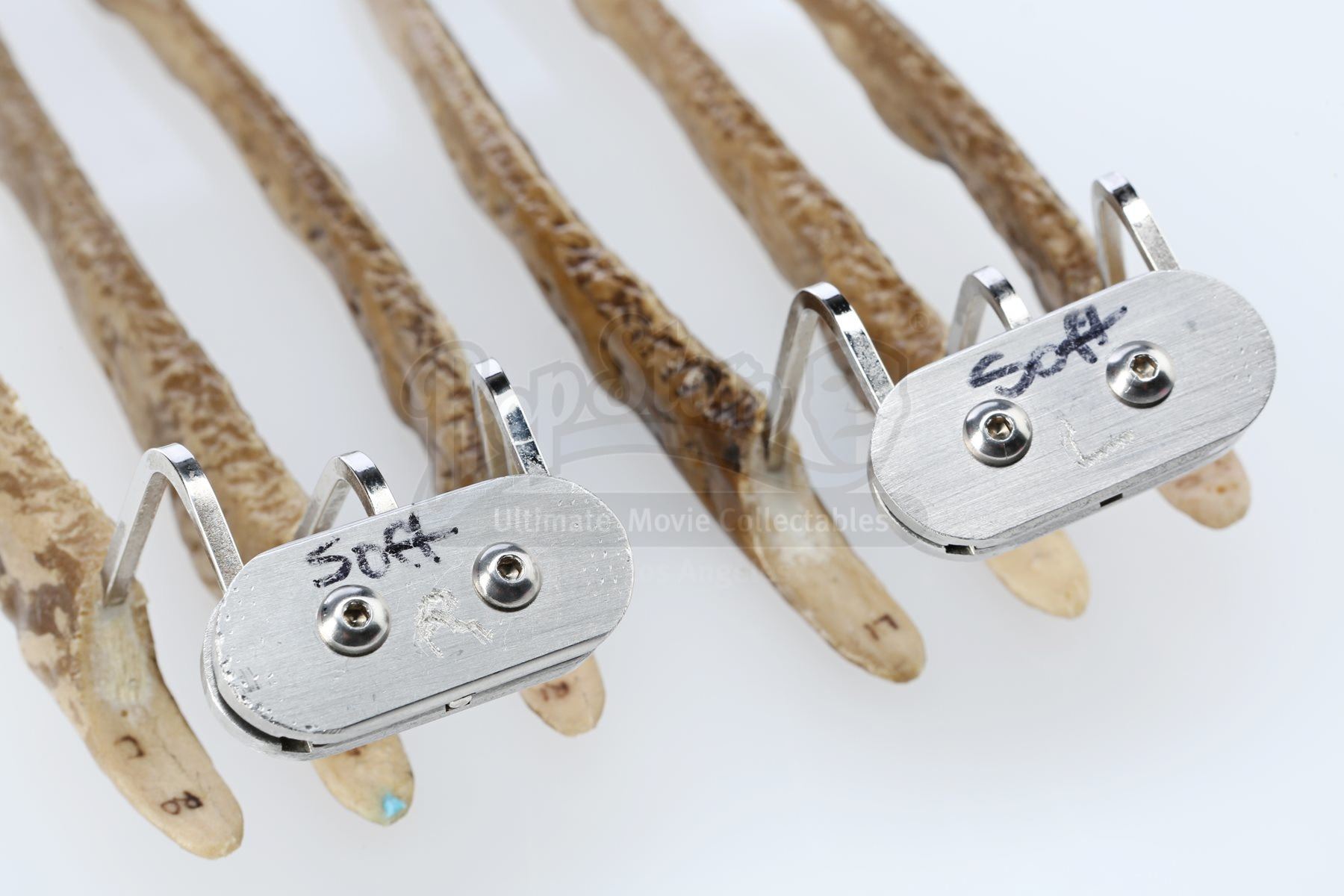 These pieces are specifically made for the young actor’s hands. The claws are made of urethane, extending from aluminium grips. Each claw is finished with brown-and-tan paint highlights to make it resemble a length of real bone. A small “L” and “R” are scratched onto the bottom palm grip of each respective set, and each one is labeled “soft”. This lot shows minor signs of wear, but remains in very fine overall condition. 25.5 cm x 6.5 cm x 4 cm (10” x 2 ½” x 1 ½”)