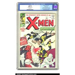 X-Men #1 Double cover (Marvel, 1963) CGC NM- 9.2 Off-white pages. With a VF 8.0 outer cover protecting a NM- 9.2 inner cover, this copy of X-Men #1 is one of the best in existence. Only 5 copies of this Marvel key have been graded higher by CGC, but none of them have the distinction of possessing two covers. With Hollywood gearing up for a second X-movie, now is an ideal time to obtain such a prime X-piece. This is an outstanding book that will make even the most jaded of Silver Age collectors do a double take. Most collectors would be thrilled to own a VF copy of this Marvel key, but this one has a nice surprise inside. With off-white pages and an incredibly glossy inner cover, this book is definitely one for the ages. As the most successful super team of the last 20+ years, the impact of the X-Men on the comics industry is undeniable...this is the team that changed the direction of comics. Origin and first appearance of the X-Men (Angel, Beast, Iceman, Cyclops, and Marvel Girl), and first appearance of Magneto and Professor X. Jack Kirby cover and art. Overstreet 2002 NM 9.4 value = $10,000. Important notice: We expect to be auctioning lots at the rate of 200-250 per hour. Sometimes eBay Premier live bid software cannot keep up with that pace, so we strongly recommend that you place a realistic proxy bid now as insurance to avoid disappointment. Also please note that all Heritage/CAA lots purchased through eBay Premier carry a 20% Buyer's Premium. Please make sure you read the Terms and Conditions.