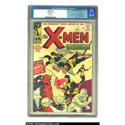X-Men #1 (Marvel, 1963) CGC VG/FN 5.0 Off-white pages. The origin and first appearance of the X-Men by Jack Kirby continues to be one of the hottest Silver Age keys since the X-Men continue to be one of the hottest Marvel properties. Mid-grade copies such as this one can still be had at bargain prices, and this one will surely find a home in a permanent collection. Overstreet 2002 GD 2.0 value = $560; FN 6.0 value = $1,680. Important notice: We expect to be auctioning lots at the rate of 200-250 per hour. Sometimes eBay Premier live bid software cannot keep up with that pace, so we strongly recommend that you place a realistic proxy bid now as insurance to avoid disappointment. Also please note that all Heritage/CAA lots purchased through eBay Premier carry a 20% Buyer's Premium. Please make sure you read the Terms and Conditions.
