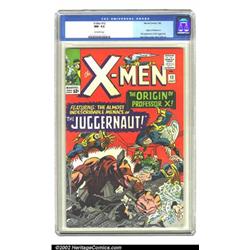 X-Men #12 (Marvel, 1965) CGC NM- 9.2 Off-white pages. This landmark issue features the origin and first appearance of the Juggernaut, who is second only to Magneto in importance as an X-Men villain. He is the brother of Xavier, the X-Men's mentor. This comic also features the origin of Professor X. This classic issue is tight and glossy with rich colors. Overstreet 2002 NM 9.4 value = $460. Important notice: We expect to be auctioning lots at the rate of 200-250 per hour. Sometimes eBay Premier live bid software cannot keep up with that pace, so we strongly recommend that you place a realistic proxy bid now as insurance to avoid disappointment. Also please note that all Heritage/CAA lots purchased through eBay Premier carry a 20% Buyer's Premium. Please make sure you read the Terms and Conditions.