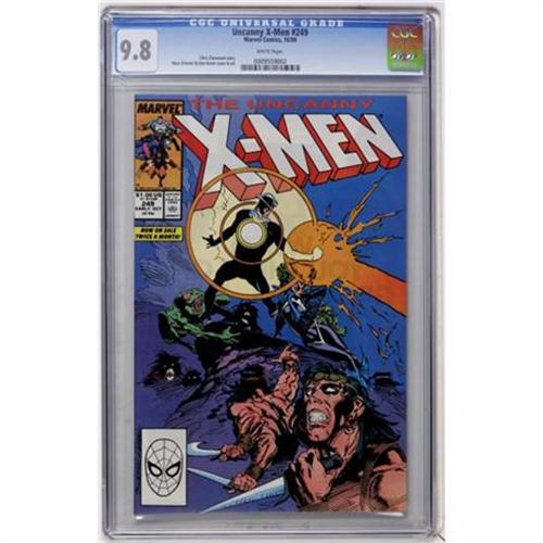 X-Men #249 (Marvel, 1989) CGC NM/MT 9.8 White pages. Overstreet 2007 NM- 9.2 value = $7. CGC census 9/07: 29 in 9.8, 1 higher. <I> From the Janowicz Collection.</B></I><BR><BR><b>Shipping:</b> Comics - Slabbed (certified) (<a target="_blank" href="http://www.heritageauctions.com/common/shipping.php">view shipping information</a>)