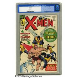 <B>X-Men #3 (Marvel, 1964) CGC NM 9.4 Off-white pages.</B></I> The third issue for the Merry Mutants brought the first appearance of the Blob. The "plus-size" supervillain would battle the X-Men many times, especially once he joined the Brotherhood of Evil Mutants. There's also more on the personalities of the group, including one of the most infamous thought balloons in Marvel history, with Professor X declaring his undying love for Jean Grey! Let's just say Stan Lee was still fleshing out the character. Jack Kirby cover and art. This is an outstanding copy, all the more so considering the white cover. Only three copies of this issue have been certified with higher grades by CGC to date. Overstreet 2004 NM- 9.2 value = $1,350. CGC census 12/04: 7 in 9.4, 3 higher. <I>From the Northern Lights Collection.</B></I>