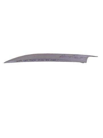 When Twentieth Century Fox began per-production on the first X-Men feature, they realized that one of them most iconic symbols from the classic comic strip was Wolverine's claws. They immediately turned to legendary special effects wizard James Gawley (known by his nickname "Jimmy Claws") to design the claws, along with so many other pieces of X-Men lore. They were right in their choice, since the claws have become the true iconic symbol for the series. This is one of James' actual moulds that he created to make the claws for Hugh Jackman as Wolverine in the third installment of the successful series "X-Men: The Last Stand" (2006). This intricately crafted mould (careful - it's sharp!) has "X-Men 3 - mould" written on one side of the blade in James' handwriting, and on the other side is his signature, as "Jimmy Claws", along with a note he's written right on the edge: "DON'T LET THEM STiCK YOU FIRST!" (Mould is approx. 10"x1"). It was one of many variations that he created for the production, and a slightly different variation was finally used. Comes with a COA.