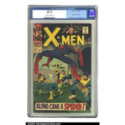 X-Men #35 (Marvel, 1967) CGC NM- 9.2 Off-white to white pages. Spider-Man leaps into action on the cover of this X-Men issue. Along with a Spider-Man crossover, this book also features Warner Roth and Dan Adkins art. Overstreet 2002 NM 9.4 value = $160. Important notice: We expect to be auctioning lots at the rate of 200-250 per hour. Sometimes eBay Premier live bid software cannot keep up with that pace, so we strongly recommend that you place a realistic proxy bid now as insurance to avoid disappointment. Also please note that all Heritage/CAA lots purchased through eBay Premier carry a 20% Buyer's Premium. Please make sure you read the Terms and Conditions.