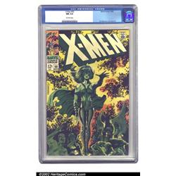 X-Men #50 (Marvel, 1968) CGC NM 9.4 Off-white pages. Jim Steranko does one of the more striking covers for the title with this masterpiece. CGC has certified just a few nicer copies of the issue than this one. Overstreet 2002 NM 9.4 value = $100. Important notice: We expect to be auctioning lots at the rate of 200-250 per hour. Sometimes eBay Premier live bid software cannot keep up with that pace, so we strongly recommend that you place a realistic proxy bid now as insurance to avoid disappointment. Also please note that all Heritage/CAA lots purchased through eBay Premier carry a 20% Buyer's Premium. Please make sure you read the Terms and Conditions.
