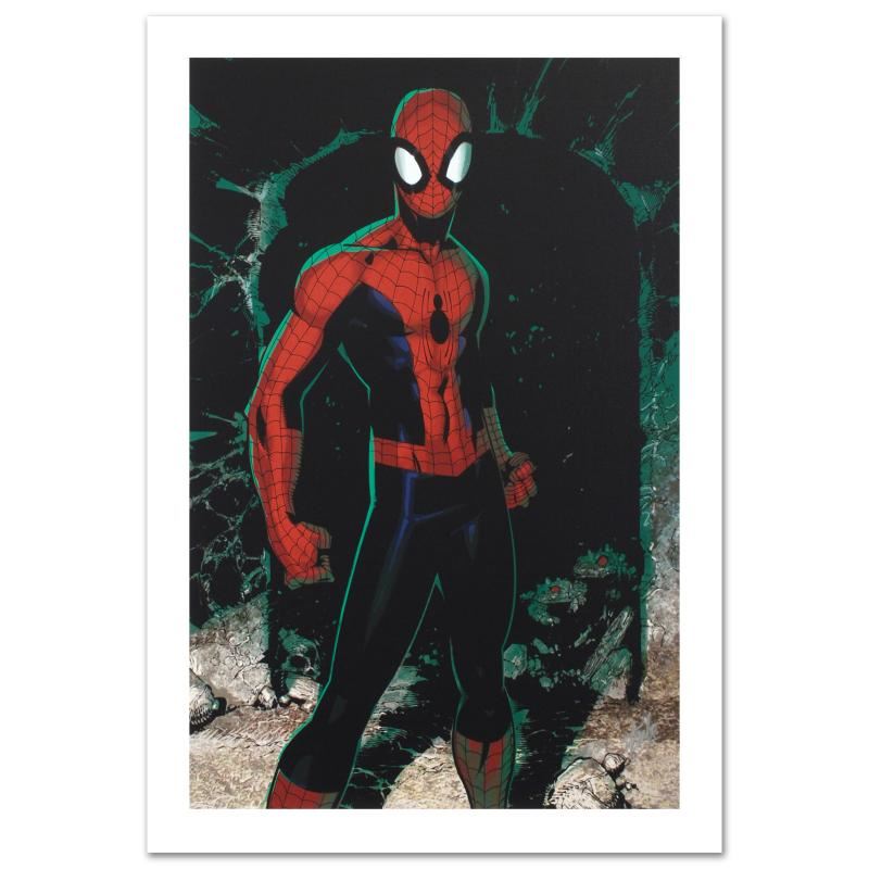 A piece of comic book history, this limited edition, from original art by Chris Bachalo, depicts Spider-Man. Known for his quirky style, Chris Bachalo has illustrated issues of X-Men Unlimited and Ghost Rider. "X-Men #7" is a limited edition giclee on canvas by Chris Bachalo presented by Marvel Comics, numbered and hand signed by the great Stan Lee! Includes Certificate of Authenticity! Measures approx. 18" x 27" (image).