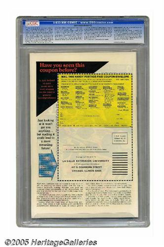 33.Exclusively Internet, CurrencyAuction.com, Amazing Comics Auctions™ and Bullet auctions: THREE (3) DAY RETURN POLICY. All lots (Exception: Third party graded notes are not returnable for any reason whatsoever) paid for within seven days of the auction closing are sold with a three (3) day return privilege. You may return lots under the following conditions: Within three days of receipt of the lot, you must first notify Auctioneer by contacting Customer Service by phone (1-800-872-6467) or e-mail (Bid@HeritageGalleries. com), and immediately mail the lot(s) fully insured to the attention of Returns, Heritage, 3500 Maple Avenue, 17th Floor, Dallas TX 75219-3941. Lots must be housed intact in their original holder and condition. You are responsible for the insured, safe delivery of any lots. A non-negotiable return fee of 5% of the purchase price ($10 per lot minimum) will be deducted from the refund for each returned lot or billed directly. Postage and handling fees are not refunded. After the three-day period (from receipt), no items may be returned for any reason. Late remittance for purchases revokes all Return-Restock privileges.