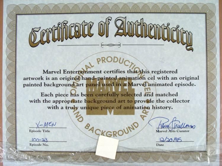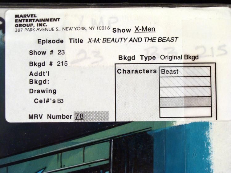This is an original signed production cel and background from the hit series X-Men. Stan Lee signature is located on the right of cel in black sharpie. * * Under a cloud of increasing anti-mutant sentiment, Professor Xavier creates a haven at his Westchester mansion to train young mutants to use their powers for the benefit of humanity, and to prove mutants can be heroes. Xavier recruited Cyclops, Iceman, Angel, * Beast and Jean Grey calling them "X-Men" because they possessed the "x-gene", an ability normal humans lacked. Early issues introduced the team's arch enemy, Magneto and his Brotherhood of Evil Mutants, who would later battle the X-Men for years. * * WATCH OUT!!! BEAST MODE! * * * * * Original Animated Cel & Production BackgroundMedium: Hand painted acetate celDetails: Animation notations and peg holes * * Overall Size of the Cel: 10 1/2" x 12 1/2" * Overall Size of the background: 10 1/4" x 15" * Excellent Condition * This is an original hand-painted cel set-up used in the production of an episode of X-Men titled "Beauty and the Beast." Each one-of-a-kind set-up represents a slight change in position of the characters. When individually photographed and projected in rapid * succession, the images appear to move. * * To create production cels, the original animator's drawing is transferred onto an acetate cel (by hand-inking and/or photo copying). The cel is then hand-painted on the reverse side. The background accompanying this set-up is an original production background. * * * The cel and original background is ready to be matted and framed. The animators notations are located at the bottom of the cel and background. A Certificate of Authenticity from Marvel is on the back of background. * The Marvel Seal is located at the top right of the cel. The cel and background are in a protective sleeve. An information card about the episode is located at the top right of the protective sleeve. *