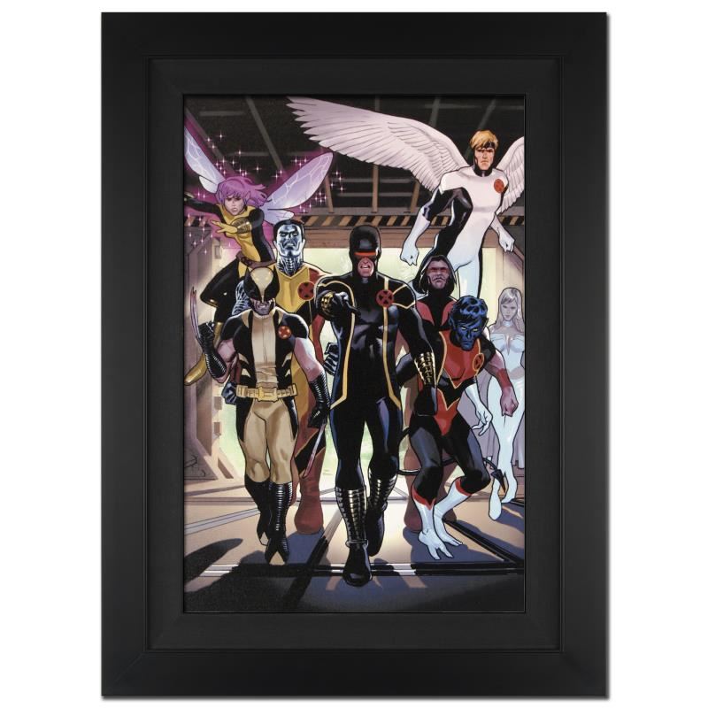 A piece of comic book history, this limited edition, from original art by Daniel Acuna, depicts Cyclops, Wolverine, Nightcrawler and Angel, among other X-Men Characters. Spanish artist Daniel Acuna cites artists like Jack Kirby and Simon Bisley as his early artist influences. After doing some occasional cover art for Marvel, Acuna signed an exclusive contract with Marvel in 2007. "X-Men Annual Legacy #1" is an extremely limited edition giclee on canvas by Daniel Acuna presented by Marvel Comics, hand signed by the great Stan Lee and numbered out of only 10! This piece is custom framed and is ready to hang. Includes Certificate of Authenticity! Measures approx. 25" x 34" (with frame); 18" x 27" (image).