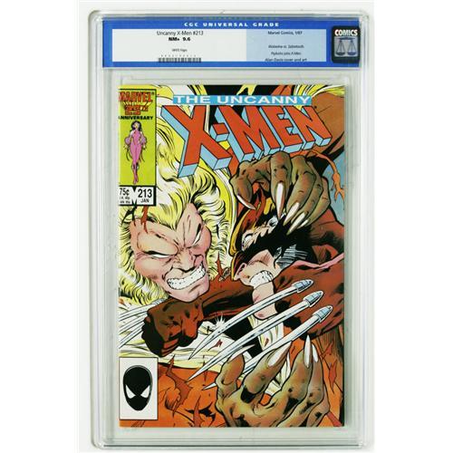 <B>X-Men CGC Group (Marvel, 1984-87).</B></I> Every book here is CGC 9.6, and all have off-white to white pages unless otherwise noted. Included here are #188 (CGC census 4/06: 46 in 9.6, 75 higher), #191 (white pages; 28 in 9.6, 40 higher), #193 (45 in 9.6, 37 higher), #196 (36 in 9.6, 35 higher), #198 (45 in 9.6, 31 higher), #200 (53 in 9.6, 21 higher), #201 (66 in 9.6, 22 higher), #204 (white pages; 24 in 9.6, 13 higher), and #213 (white pages; 101 in 9.6, 28 higher). Overstreet 2006 NM- 9.2 value for group = $104.