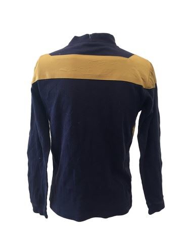 X-Men: Dark Phoenix (2019) - Cyclops (Tye Sheridan) blue shirt with gold stripe, inside label reads "Scott".