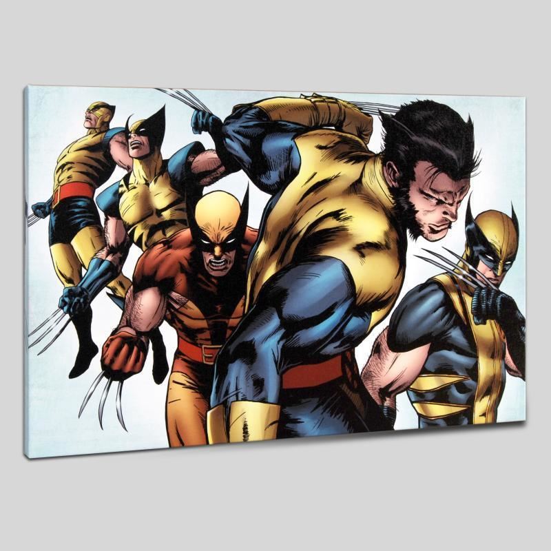 A piece of comic book history, this limited edition, from original art by Patrick Zircher, depicts the heroic Wolverine. Zircher's early career as an illustrator in the genre began with production of several completed works for Villains and Vigilantes, Champions and other pen and paper role-playing games as well as early stints with independent comic book publishers. Following this he went on to work largely for Marvel Comics on leading titles like Iron Man, Thunderbolts and New Warriors but also did a considerable amount of work for DC. He is currently exclusive with Marvel Comics. "X-Men Evolutions #1" is a limited edition numbered giclee on stretched canvas by Patrick Zircher presented by Marvel Comics. This piece comes gallery wrapped. Includes Certificate of Authenticity! Measures approx. 27" x 18" (image); 1.5" (depth).