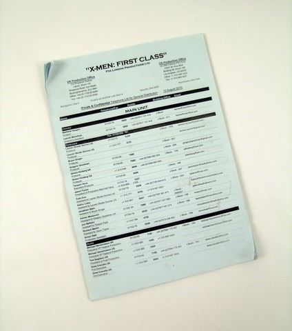 From "X-Men First Class" (2011) this is an original production Main Unit List.