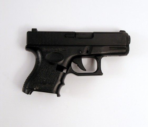 From the original "X-Men" (2000) a cut down black plastic prop Glock 17 stunt handgun,. Most likely holstered and used in the Statue of Liberty sequence. (Approx. 6 1/2" long).
