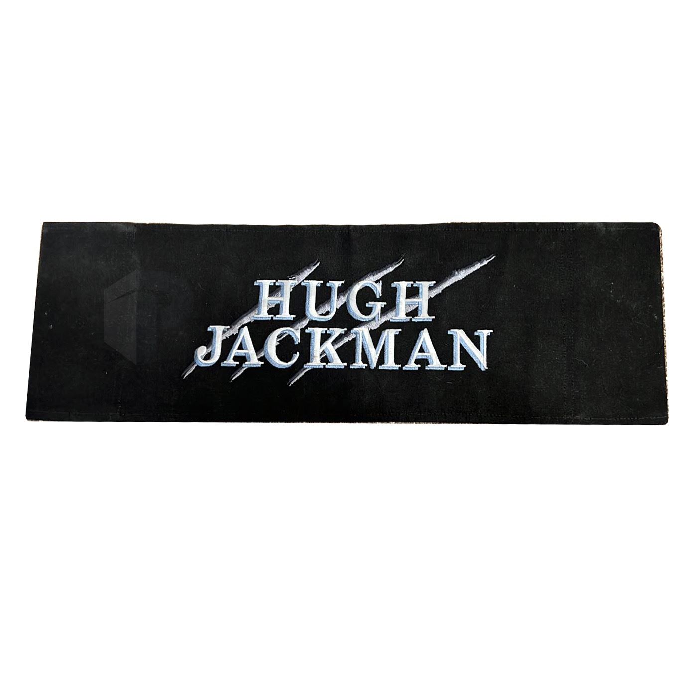 Original chairback used in the production of the 2006 superhero installment X-Men III: The Last Stand. The discovery of a cure for mutations leads to a turning point for Mutants (Hugh Jackman, Halle Berry, Famke Janssen, Anna Paquin, Rebecca Romijn, Kelsey Grammer). They may now choose to give up their powers and become fully human or retain their uniqueness and remain isolated. War looms between the followers of Charles Xavier (Patrick Stewart), who preaches tolerance, and those of Magneto (Ian McKellen), who advocates survival of the fittest. This chairback was used by actor Hugh Jackman who portrayed Wolverine in the film. This piece is made of black canvas with the actors name embroidered on the back with three jagged claw marks. This item remaisn in excellent, production used condition.