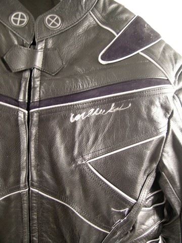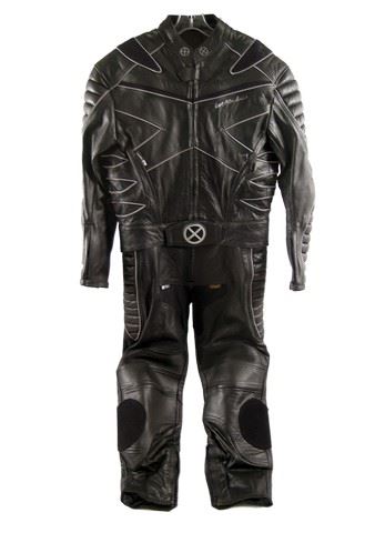 Direct from the production of X-Men (2000) is a very rare prototype 'Top Gear' motorcycle leather outfit used as reference for the numerous costumes used in the X-Men franchise. This jacket and style was created by the original costumer for the movie and is a size 44.