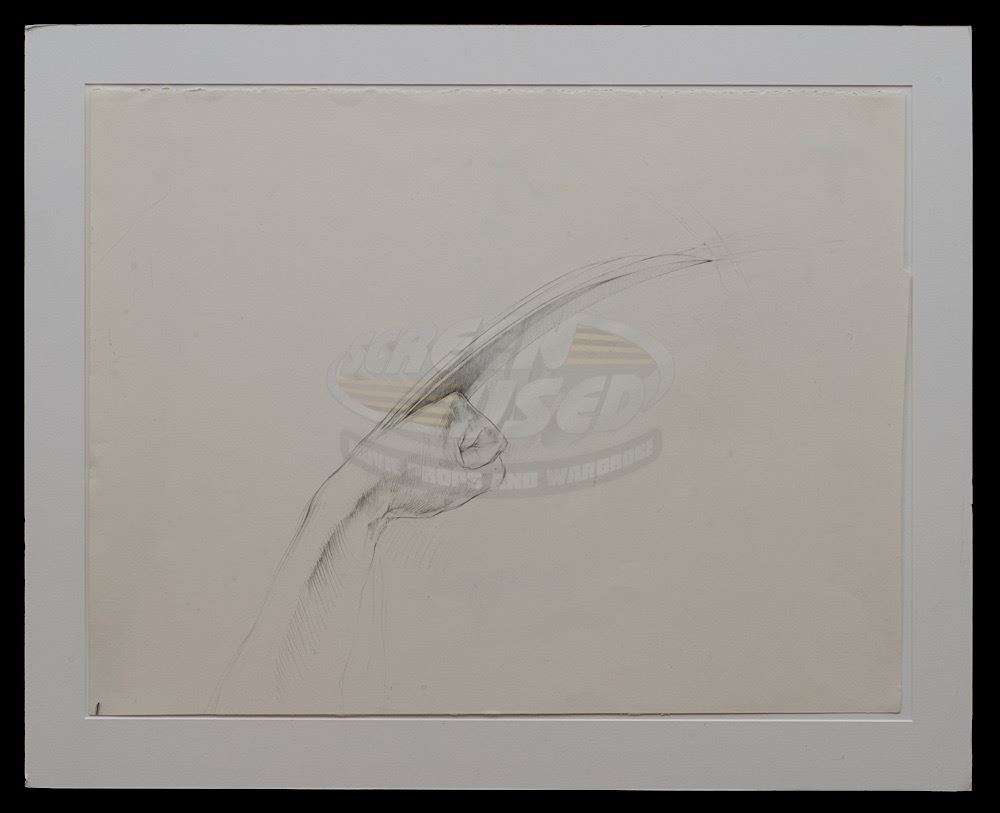 (Twentieth Century Fox, 2000) This original production drawing features Wolverine's fist and extended claws. The fist and claws are accomplished in pencil on heavy card stock paper. The art is unsigned and measures an impressive 25.25" x 19.5". This piece was previously part of the Gordon Smith (FX Smith) collection and displayed at the "X-Men Master - Gordon Smith" exhibit during 2012 at the Toronto International Film Festival (TIFF).