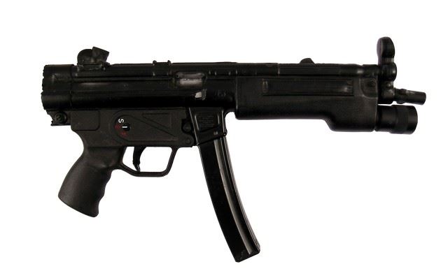 X-Men Origins Wolverine Stunt H&K Rifle Prop - A rubber stunt Heckler & Koch G36K used during the assault in Nigeria in the opening scenes of "X-Men Origins: Wolverine" (2013). Note that the stock has been cut off, and does not include the Grenade Launcher. Ironically this weapon was not manufactured until the 1990's, yet was used in a sequence that took place in the 1970's! Approx 17" long (with cut off butt stock).