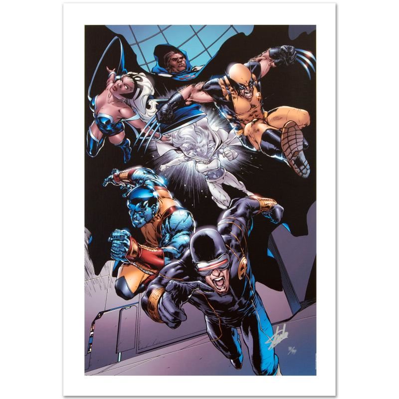 A piece of comic book history, this limited edition, from original art by Carlo Pagulayan, depicts Cyclops, Colossus, Wolverine, Storm, Emma Frost, and Cloak. Carlo Pagulayan (born June 24, 1978) is a freelance Filipino comic book artist. Pagulayan began his career in the comics business with a 3-page sequential for Dark Horse Comics, written by Doug Petrie, to aid the victims of the 9-11 attacks, and as a tribute to the fallen World Trade Center Twin Towers (2001). He has since had assignments from a few publishers, including Elektra and The Incredible Hulk for Marvel Comics. "X-Men vs. Agents of Atlas #1" is a limited edition numbered giclee on canvas by Carlo Pagulayan presented by Marvel Comics, hand signed by the great Stan Lee! Includes Certificate of Authenticity! Measures approx. 18" x 27" (image).
