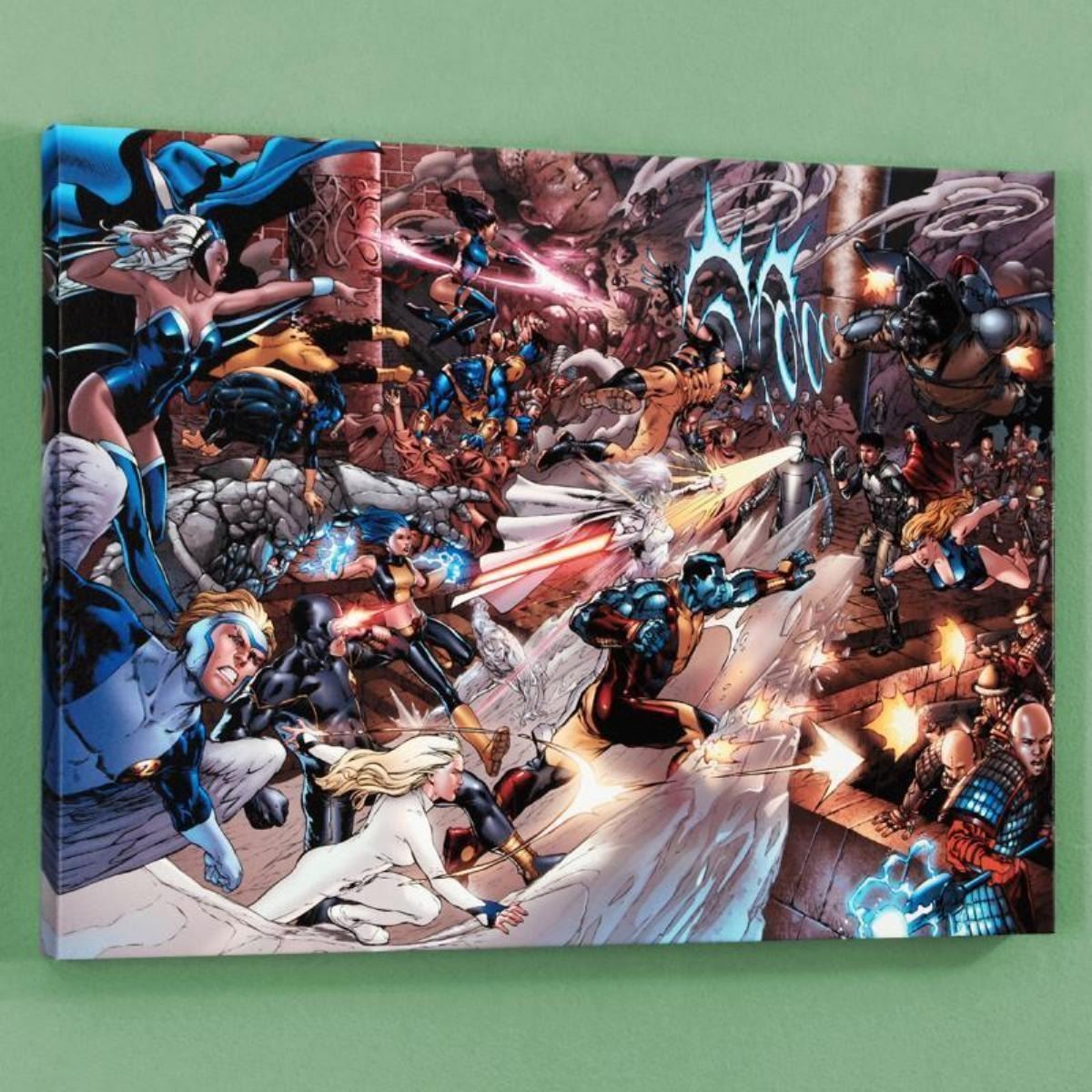 A piece of comic book history, this limited edition, from original art by Carlo Pagulayan, depicts the classic characters from the Marvel Universe. Carlo Pagulayan (born June 24, 1978) is a freelance Filipino comic book artist. Pagulayan began his career in the comics business with a 3-page sequential for Dark Horse Comics, written by Doug Petrie, to aid the victims of the 9-11 attacks, and as a tribute to the fallen World Trade Center Twin Towers (2001). He has since had assignments from a few publishers, including Elektra and The Incredible Hulk for Marvel Comics. "X-Men vs. Agents of Atlas #2" is a limited edition giclee on canvas by Carlo Pagulayan presented by Marvel Comics! This piece comes gallery wrapped. Includes Certificate of Authenticity! Measures approx. 24" x 18" (image).