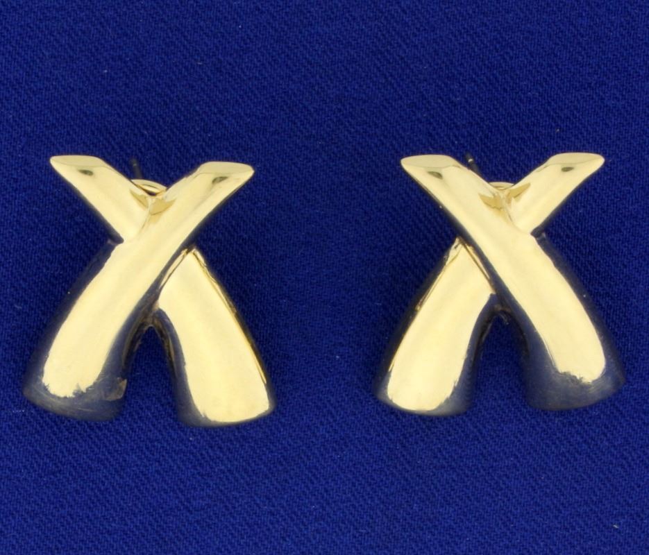 In 14k yellow gold, 1 1/8" long with post and clip backs for safety. 6.8g.