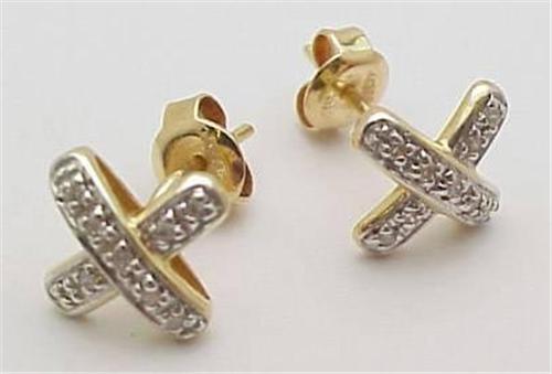 X earrings with small diamonds 14kt yellow gold 1.9gr