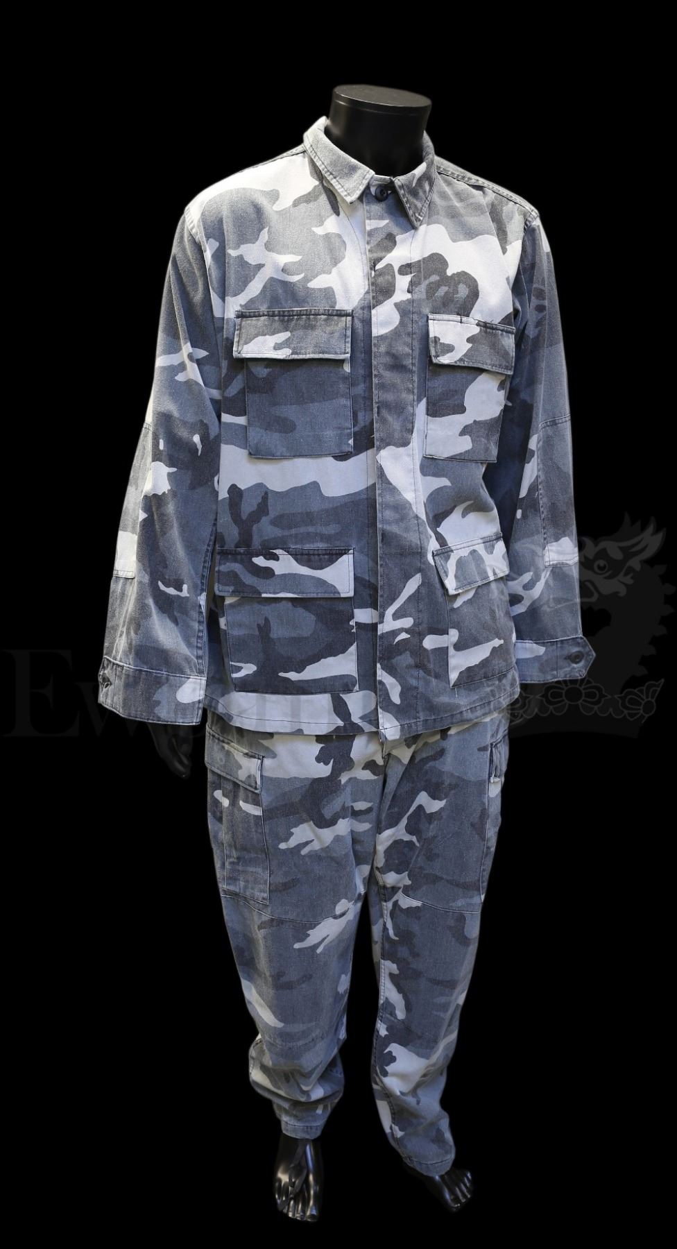 † X-men 2 (2003) A camouflaged uniform worn by one of Stryker's soldiers. The uniform consists of a heavy duty military top and trousers and can be clearly screen seen, particularly when Stryker's soldiers apprehend Wolverine. Accompanied by a 20th Century Fox COA. Please note that VAT is payable on top of the hammer price at 20% in addition to standard buyers premium inc. VAT for this lot.