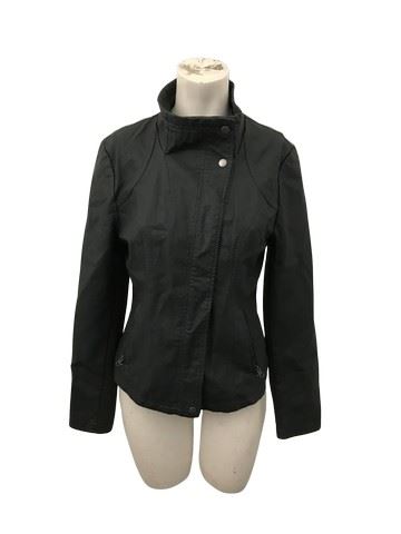 X-men: Apocalypse (2016) - Storm (Alexandra Shipp) full leather, dark charcoal, gray zip up moto jacket with fabric under the arms. From the set of production.