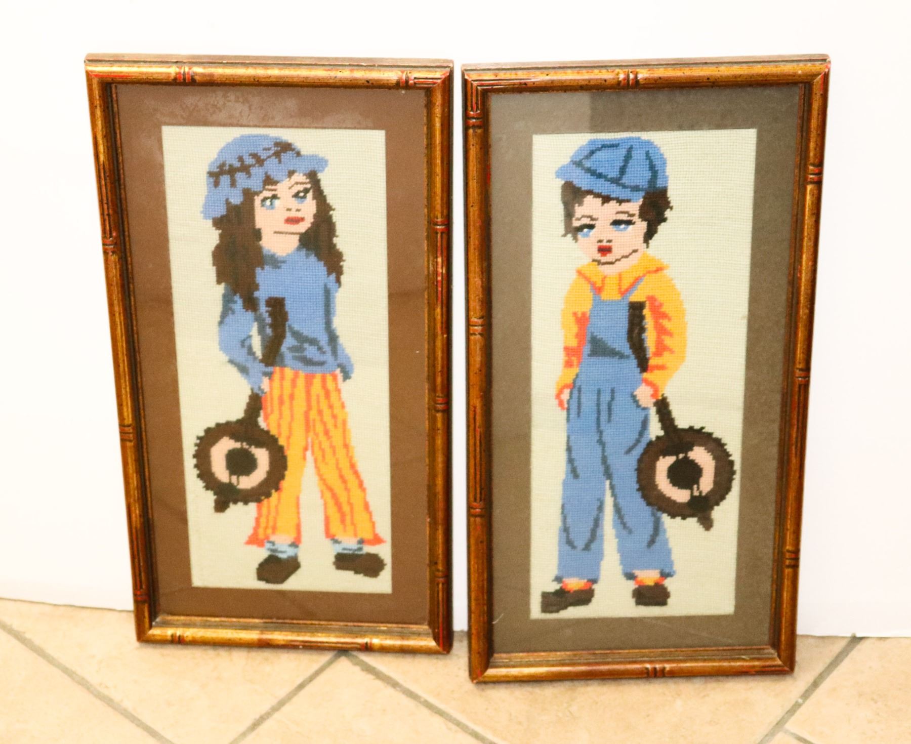 X2 HAND STICHED FRAMED BOY AND GIRL 11X22" EACH
