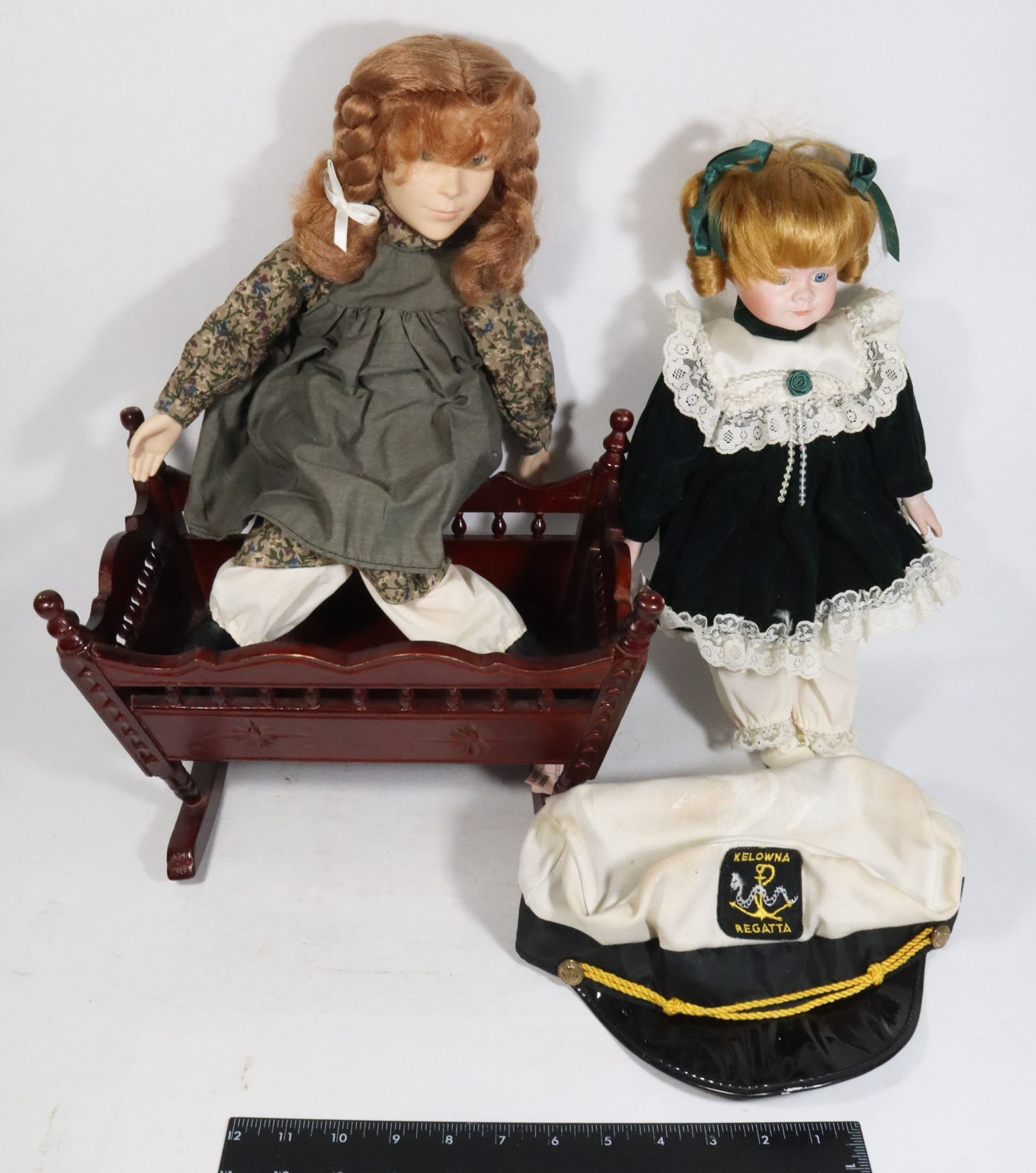 X2 VINTAGE DOLLS AND DOLL CRIB