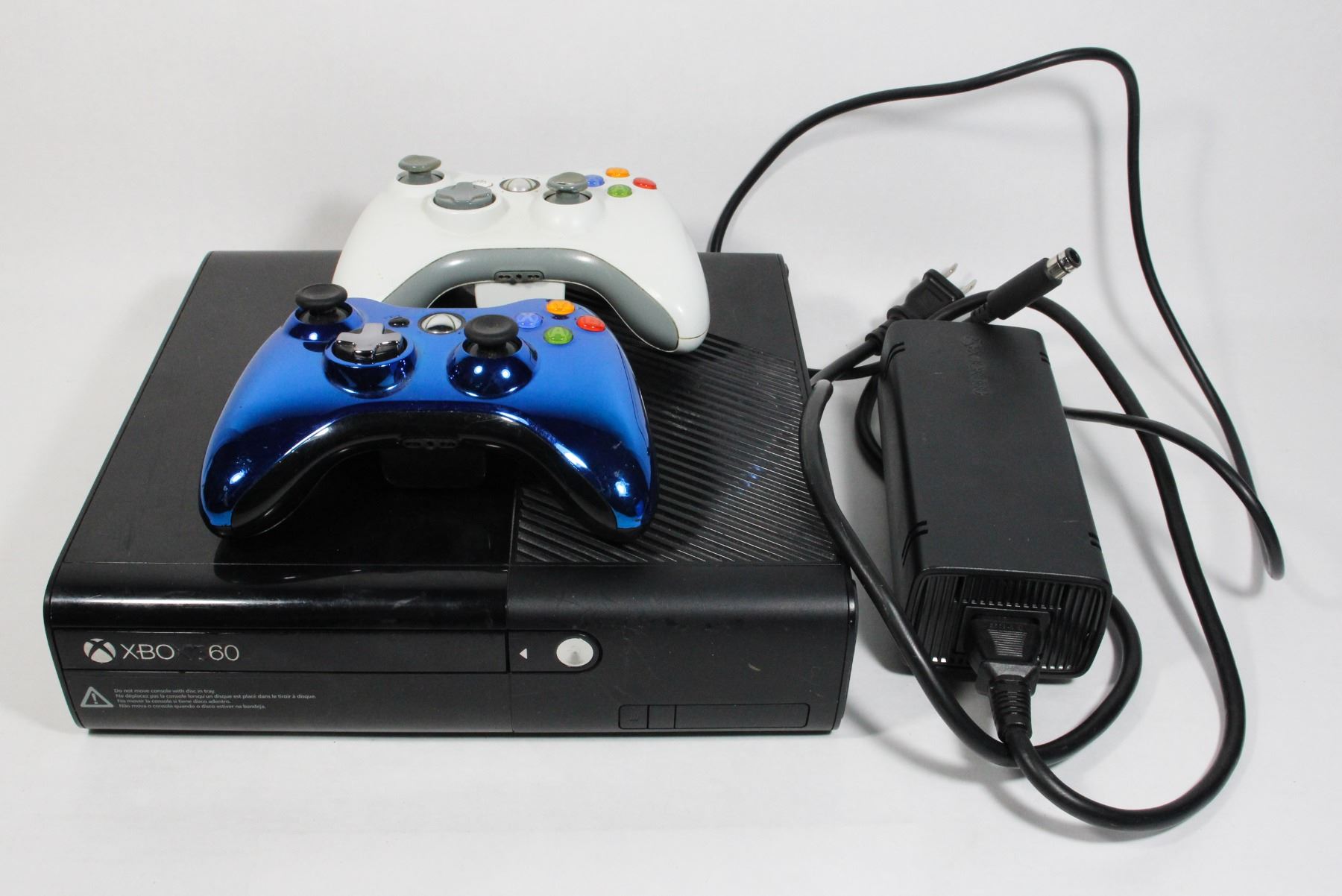 XBOX 360 CONSOLE WITH HOOKUPS, AND TWO WIRELESS