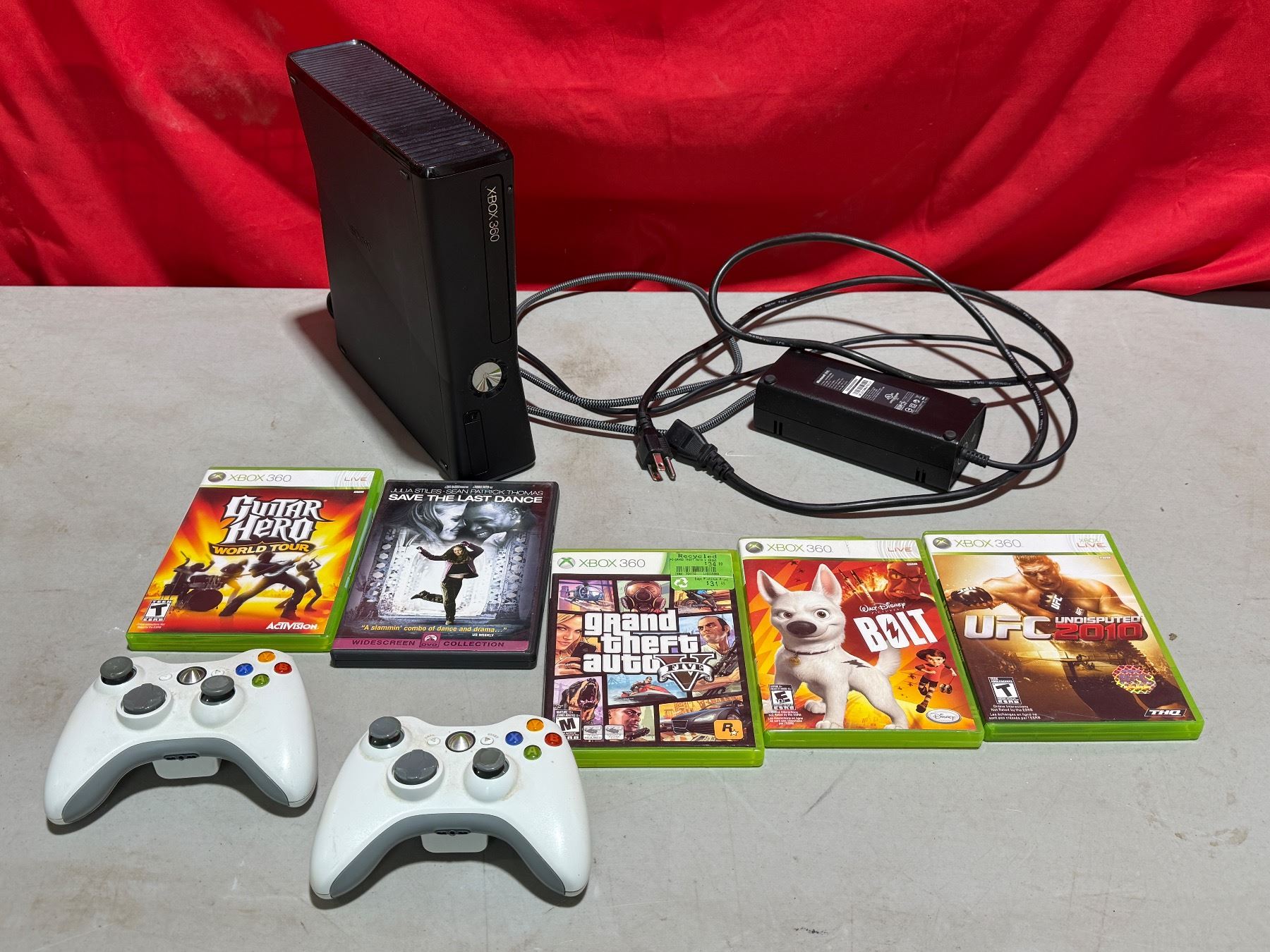 XBOX 360 Console, 2 Controllers, & Assorted Games (Guitar Hero, GTA, etc.)