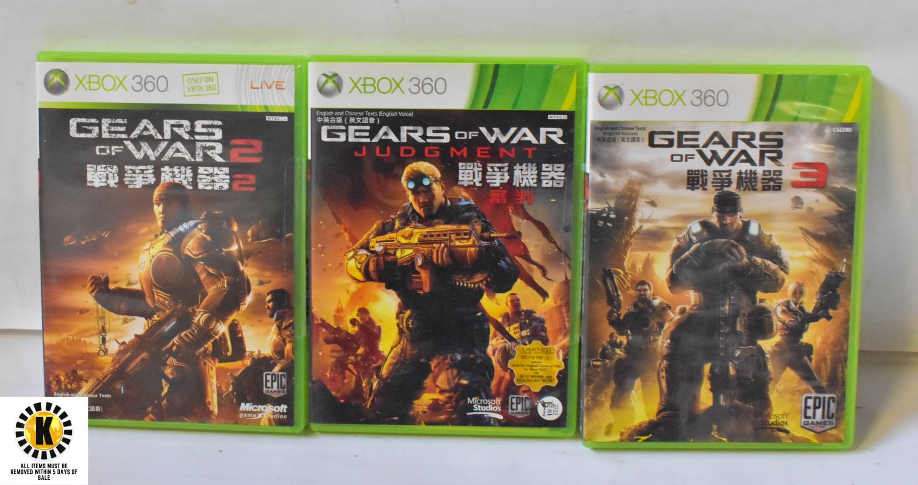 -All items need to be picked up within 5 days of purchase.