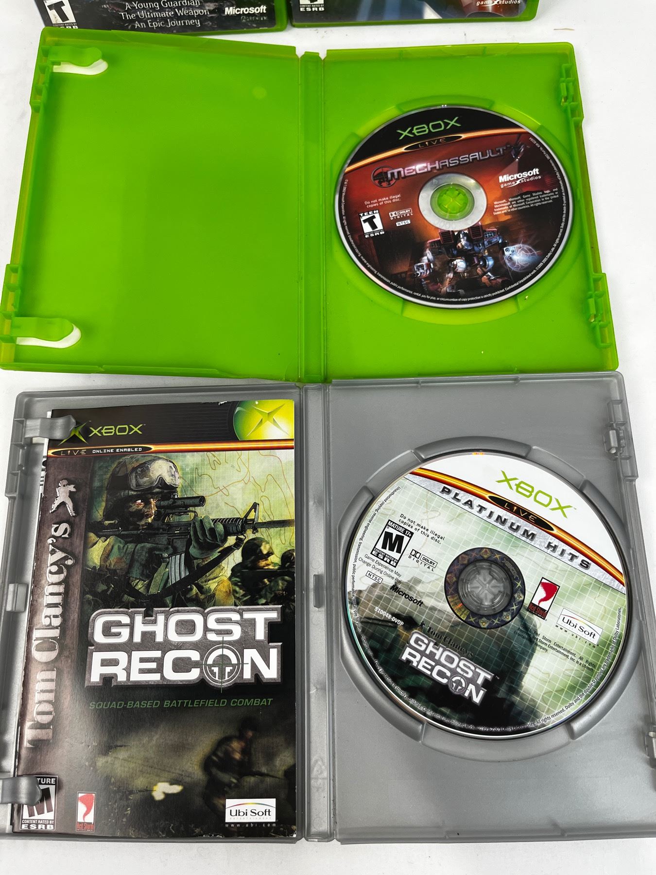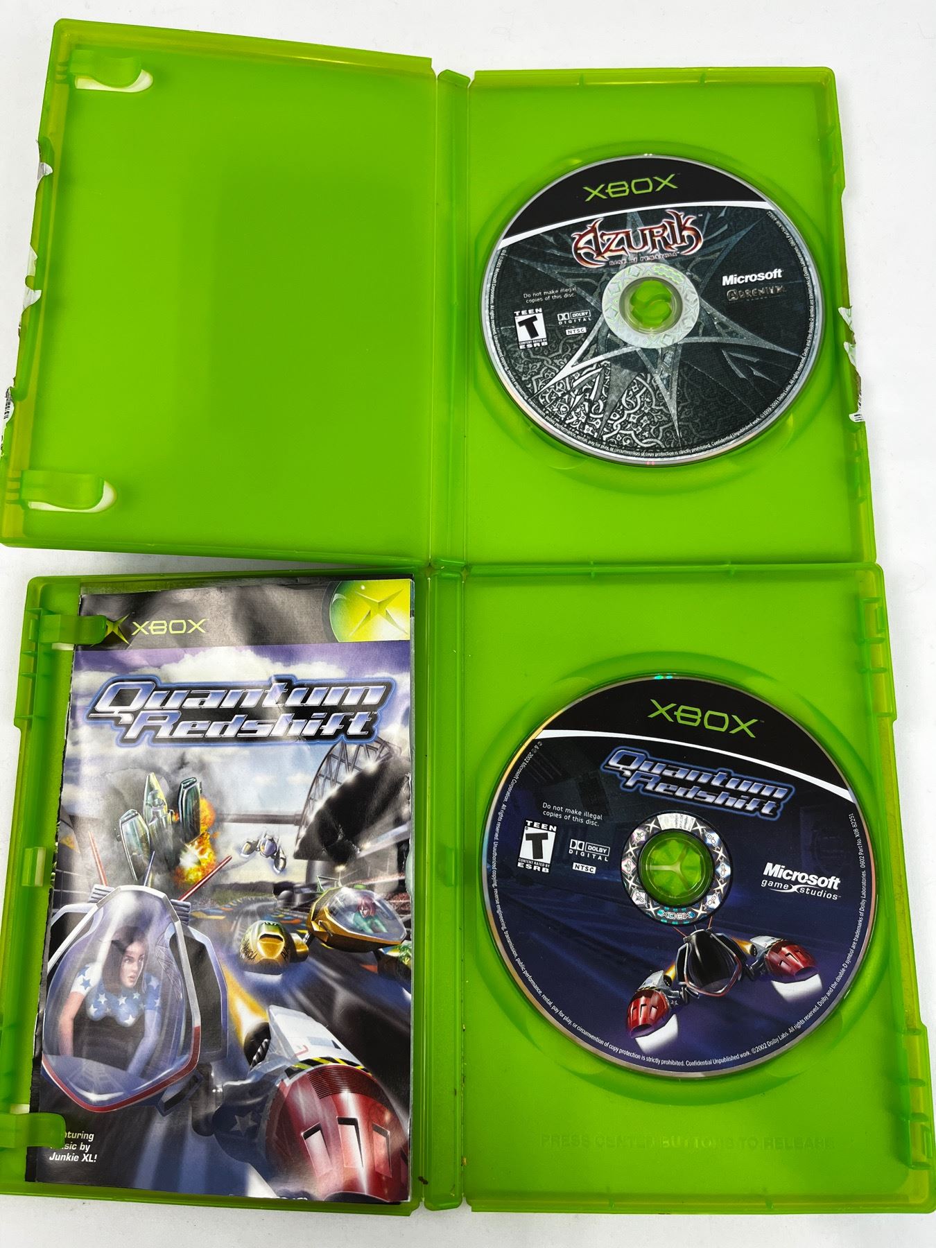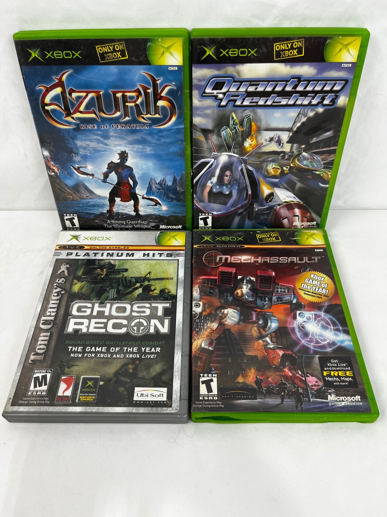 Used games including Azurik, Quantum Redshift, Mechassault, Ghost Recon, HALO2